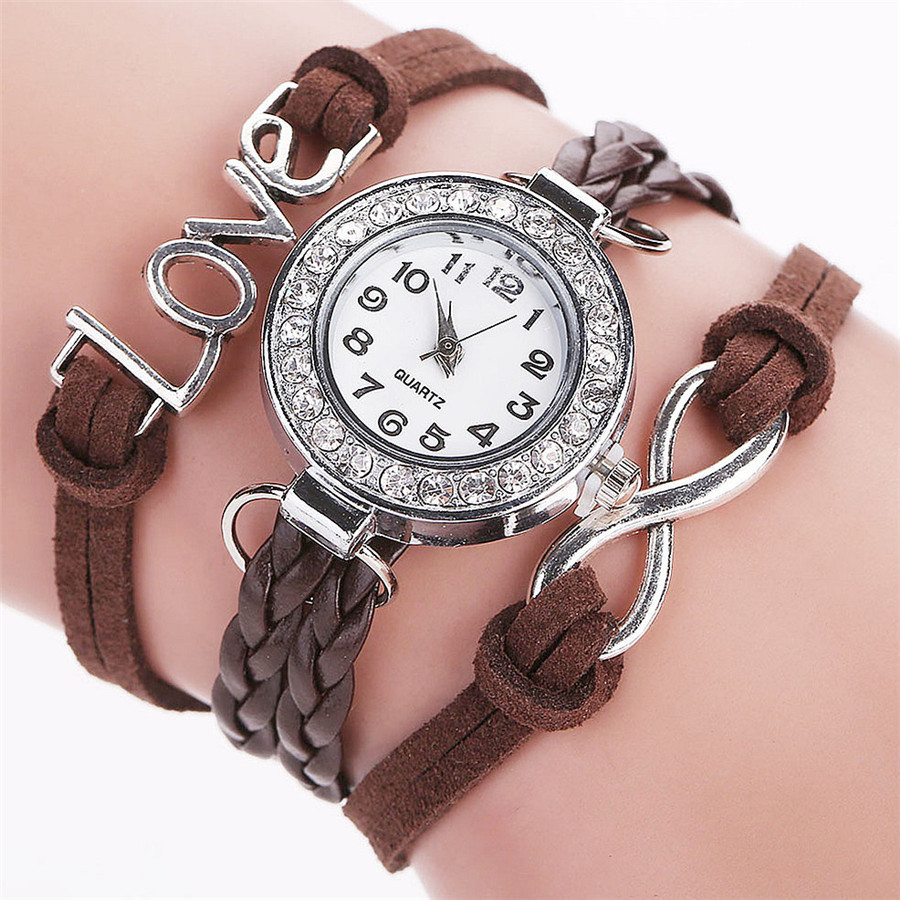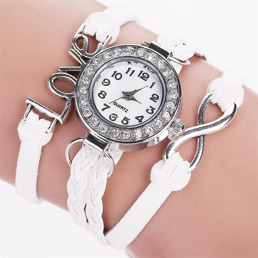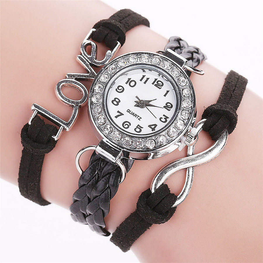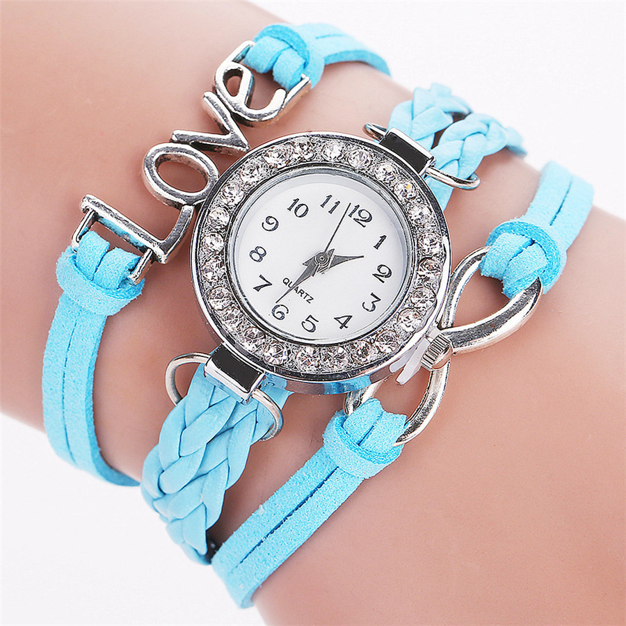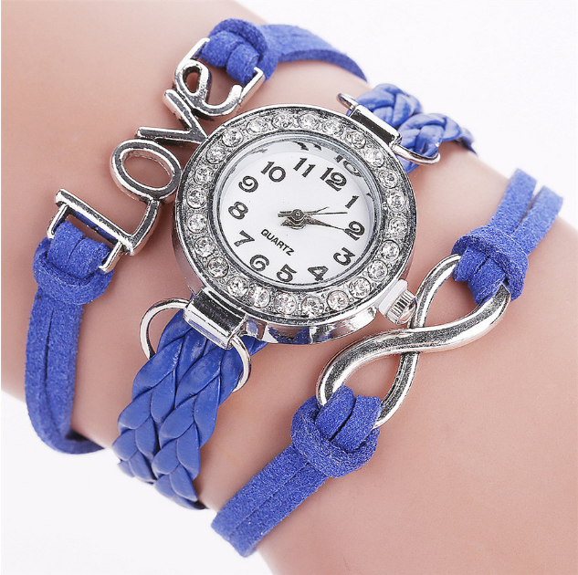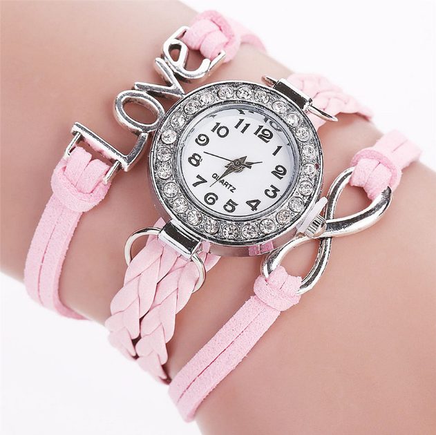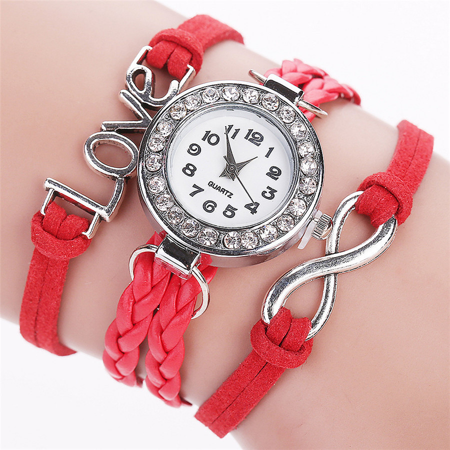 LOVE Korean velvet strap with women's diamond winding bracelet watch