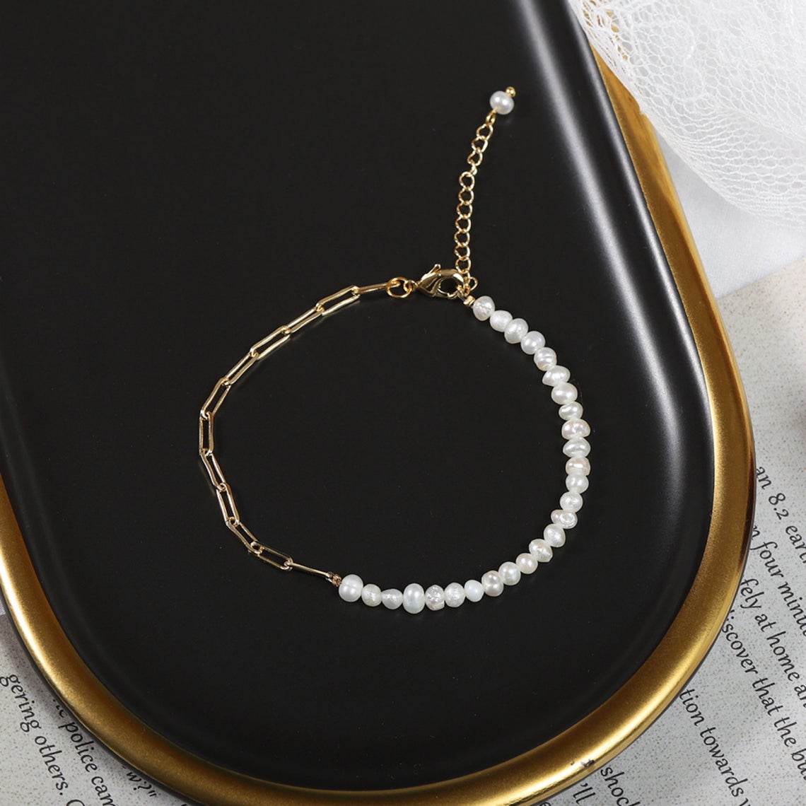 Product name: Pearl stitching bracelet productMaterial: 14k gold injection, natural freshwater pearls