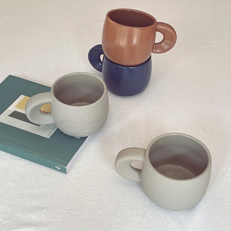 Color classification: caramel color C-handle mug cup with mouth flow glaze, blue C-handle mug, frosted earth color C-handle mug, color mud type c-handle mug