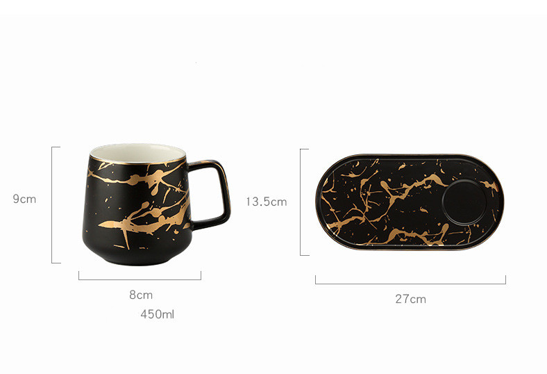 Color: black gold pattern one cup, one saucer, one spoon, white gold pattern-one cup, one saucer, one spoon, green gold pattern, one cup, one saucer, one spoon