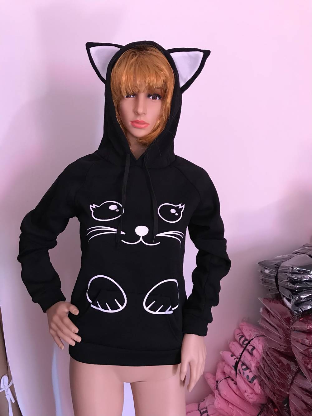 Loose printed cat sweater