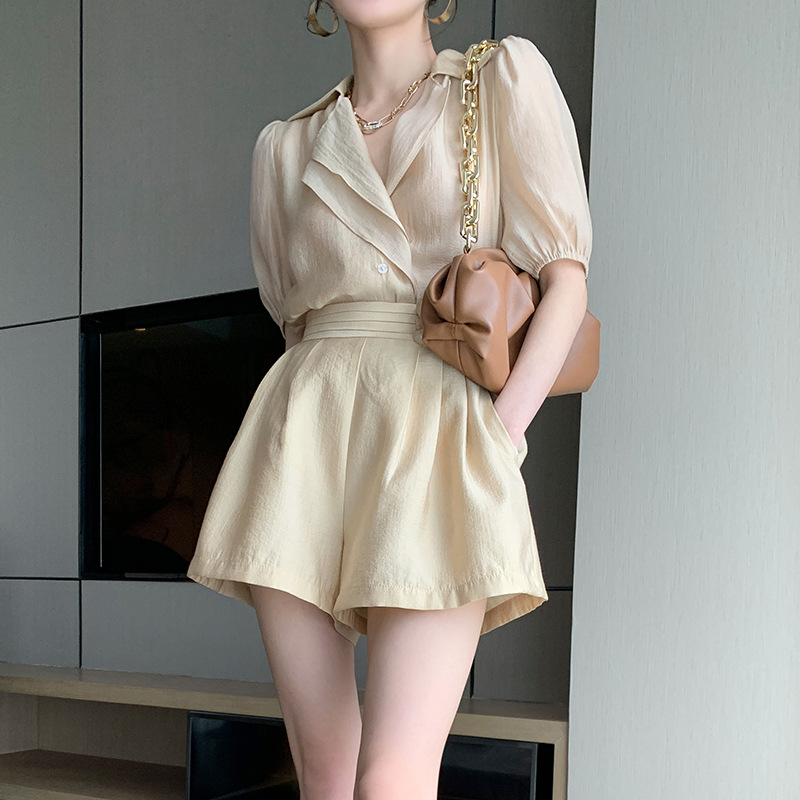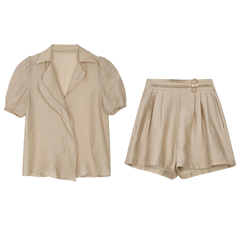 Color: beige suit, apricot suit