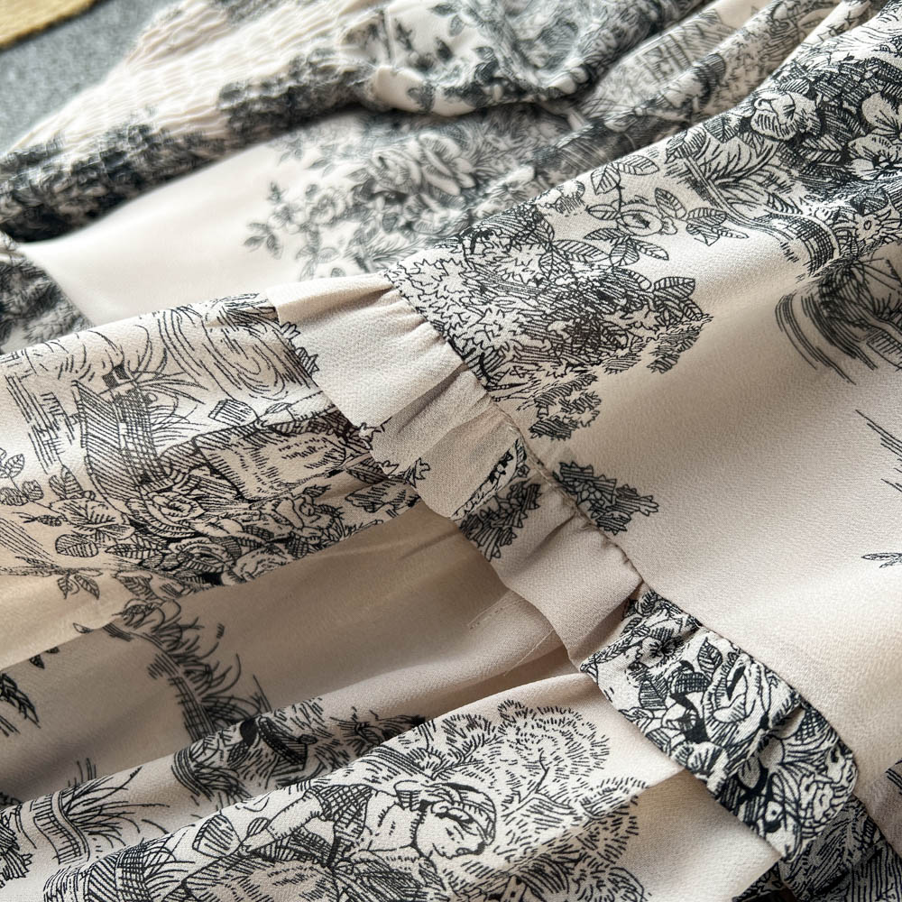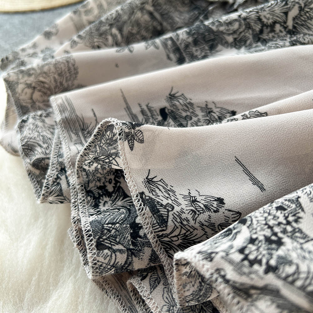 Color: apricot foundation with black flowers