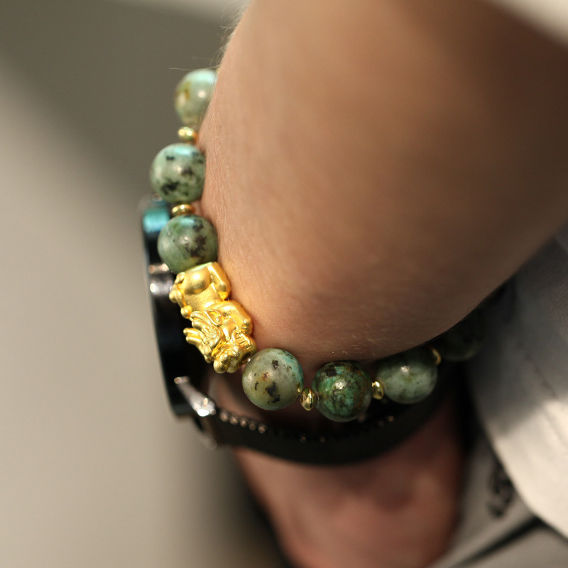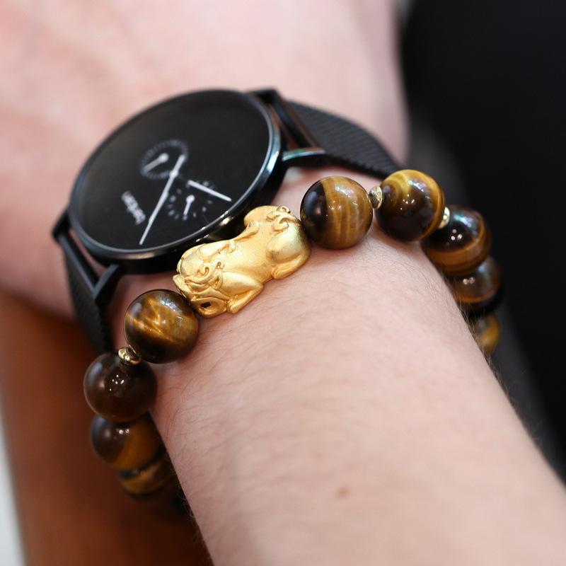 Material: 12mm natural tiger's eye, alloy, brave