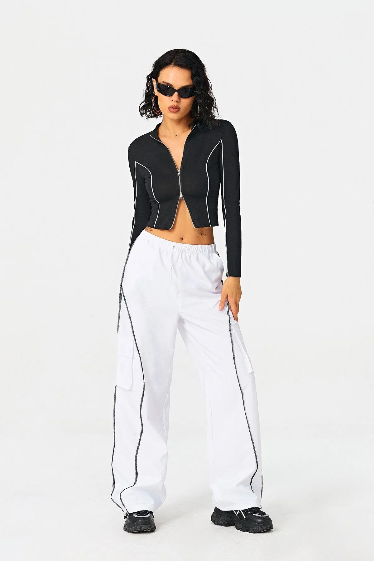 2023 Women's Contrasting Color Line Standing Collar Wears Knitted Shirts