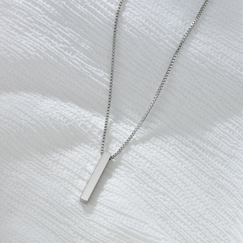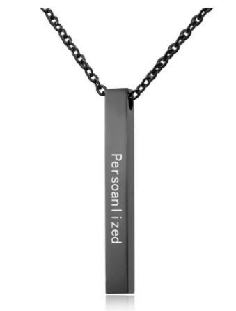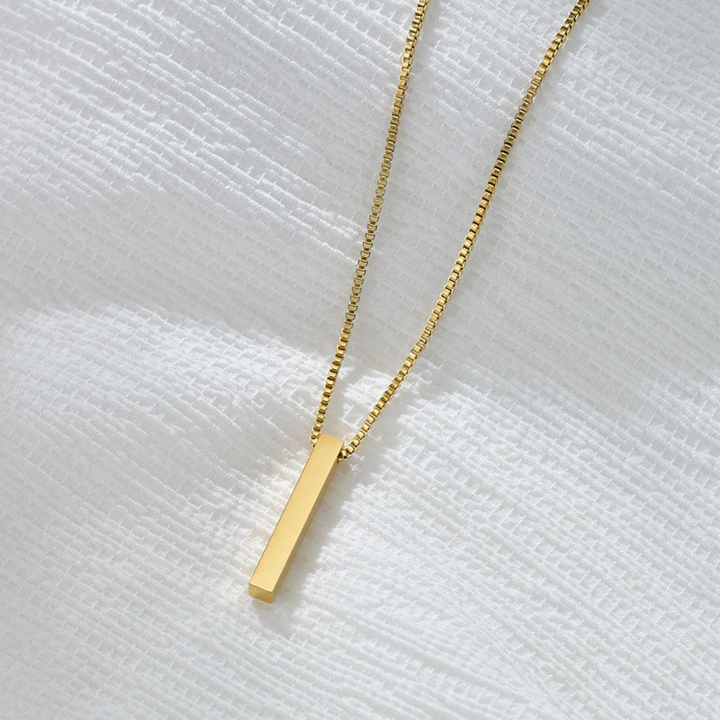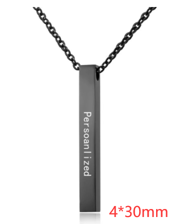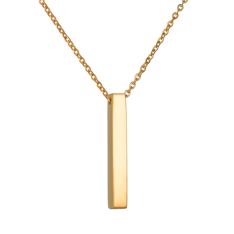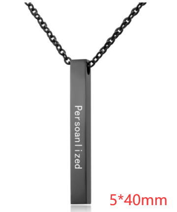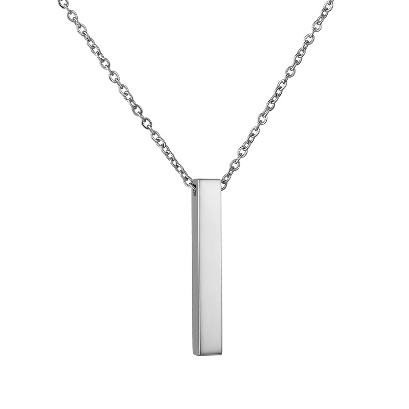 Stainless Steel Long Bar Cylinder Name Necklace