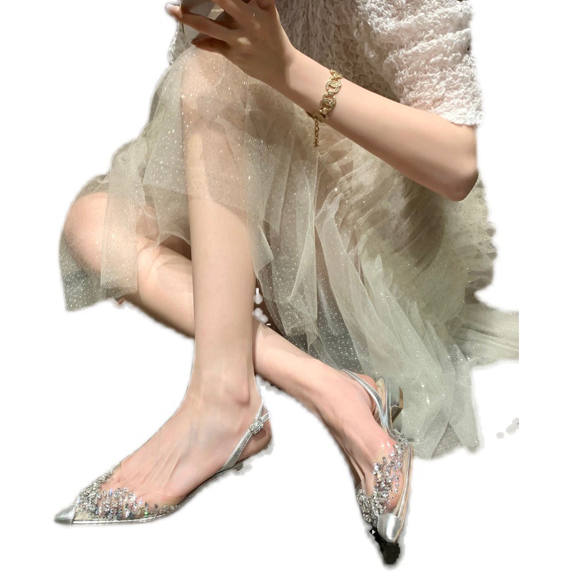 Product category: Hollow sandalsVamp material: PVCSole material: TPR(beef tendon)Style: SexyToe tip shape: pointedPopular element: rhinestones