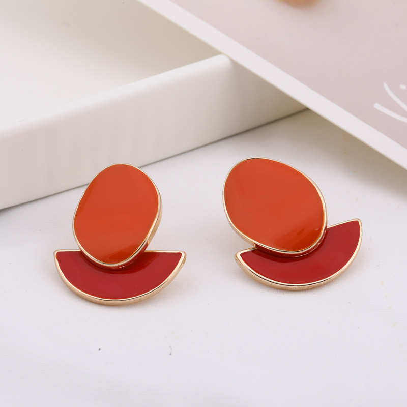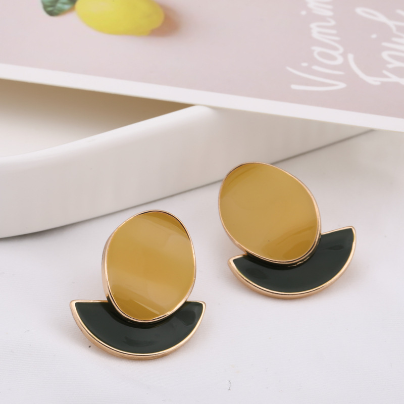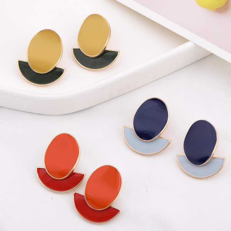 Product information:Material: AlloyStyle: European and AmericanStyle: Women'sModeling: GeometryTreatment process: dripping oilColor: A, B, CPackage:Alloy earrings X1