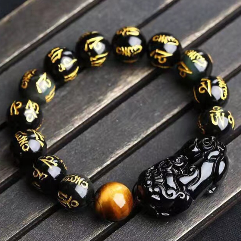 Product information:Type: OtherMaterial: ObsidianTreatment process: bronzingColor: artificial style, natural styleModel: 12mm, 14mmPackage:Obsidian bracelet x1