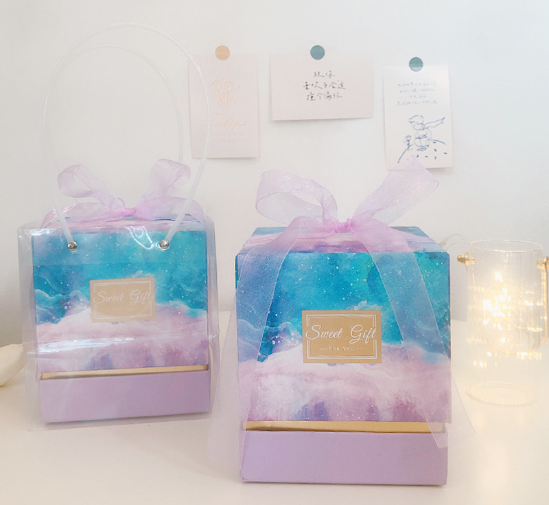 Hexagonal gift box + gift bag + raffia + small bouquet + card + wishing rabbit + 1 cup + 1 round spoon + 1 cover*1