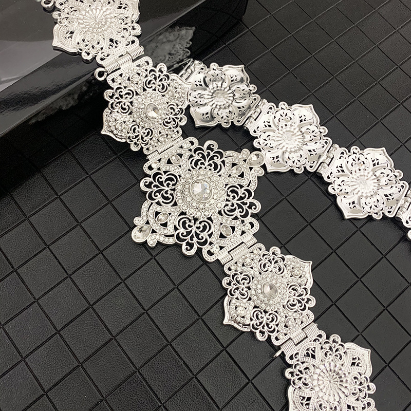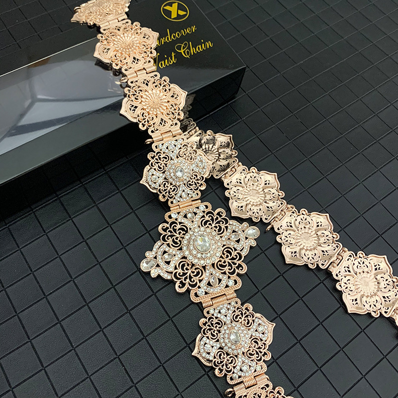 Product information :Product Category : Waist ChainMaterial: metalPopular elements: mosaicColor: gold white, gold green, silver, rose goldStyle: ethnic styleNumber of belt loops: single loopLength (CM) : 110cmPacking list:Waist chain*1
