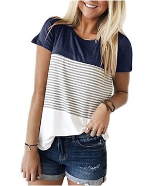 Striped Casual Round Neck Short-sleeved T-shirt Blouse