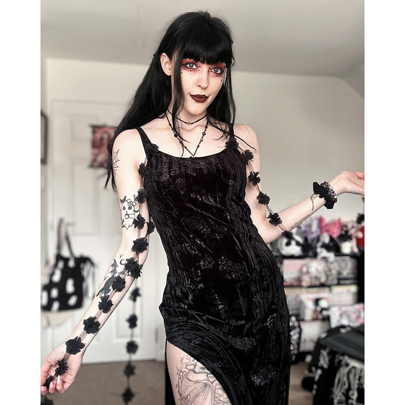 Product information: Pattern: plants and flowers Color: Black Size: S,M,L Skirt length: long skirt Main fabric composition: Polyester (polyester fiber) Sleeve length: sleeveless
