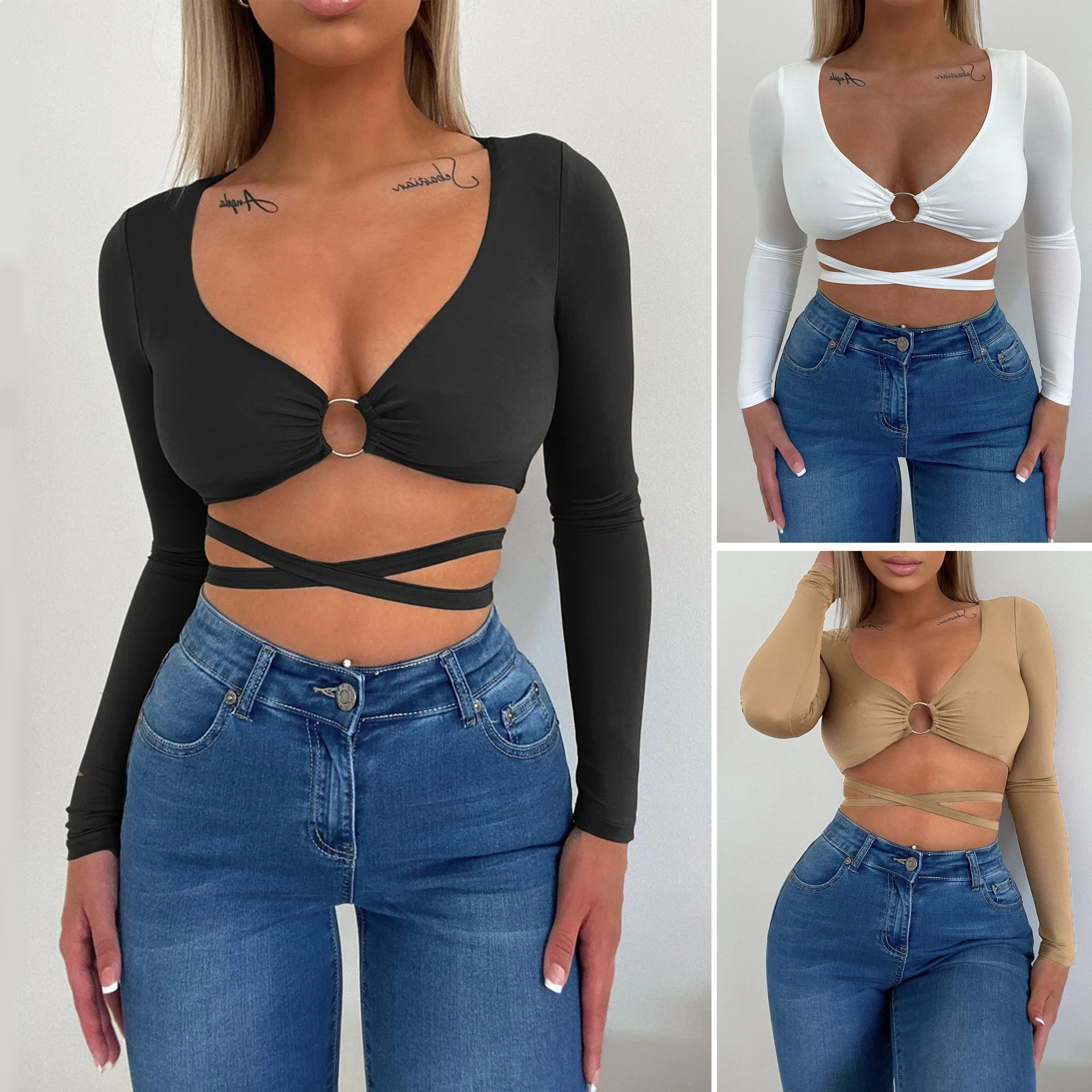 Popular elements: lace-up, hollow-out, stitching, navel exposed