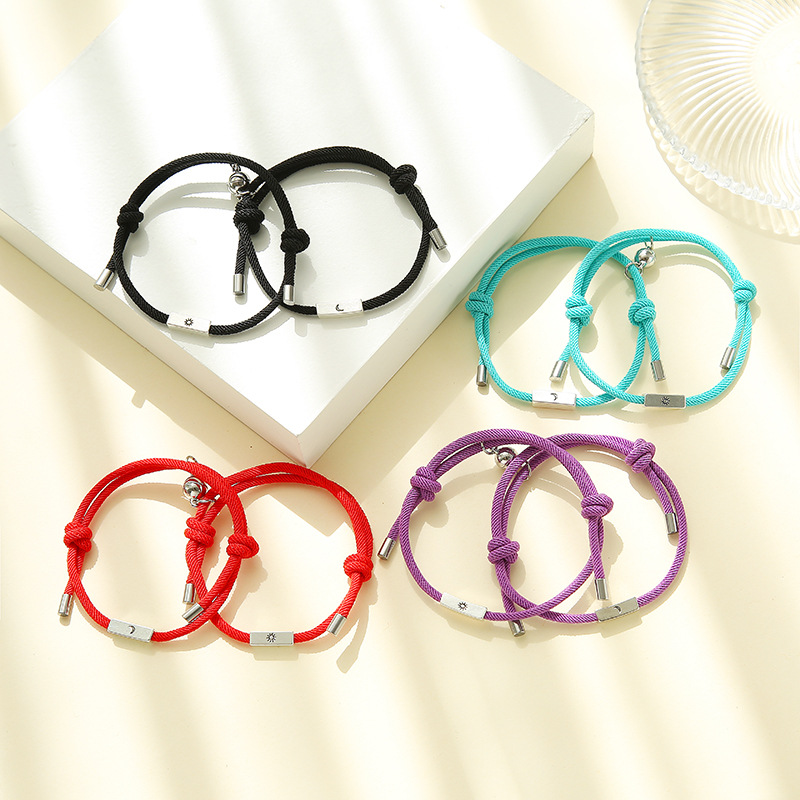 Size: adjustable range 14-26CM, rope thickness about 3MM, sun and moon size 14*4.5MM, magnet 8MM