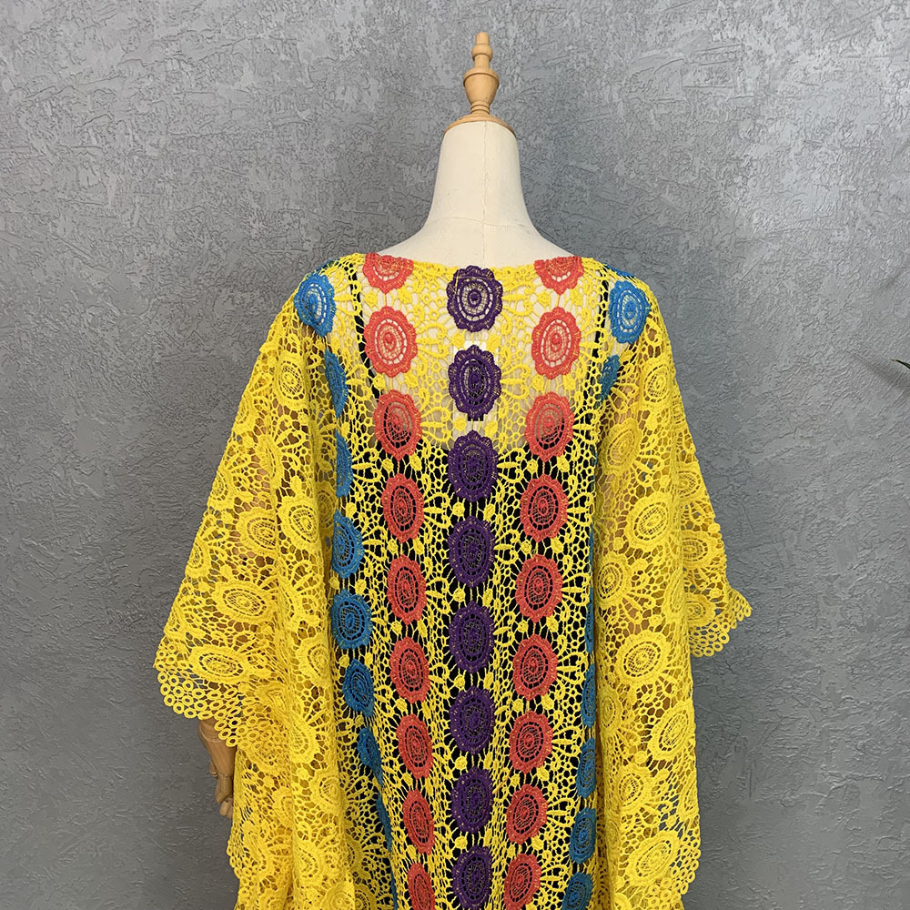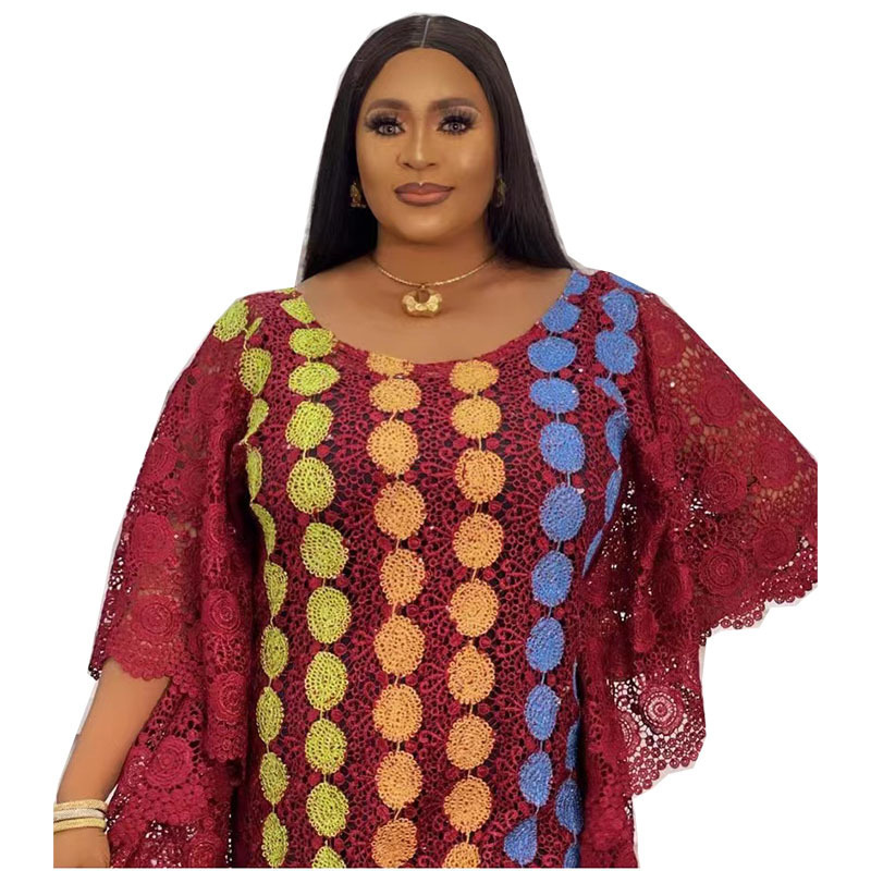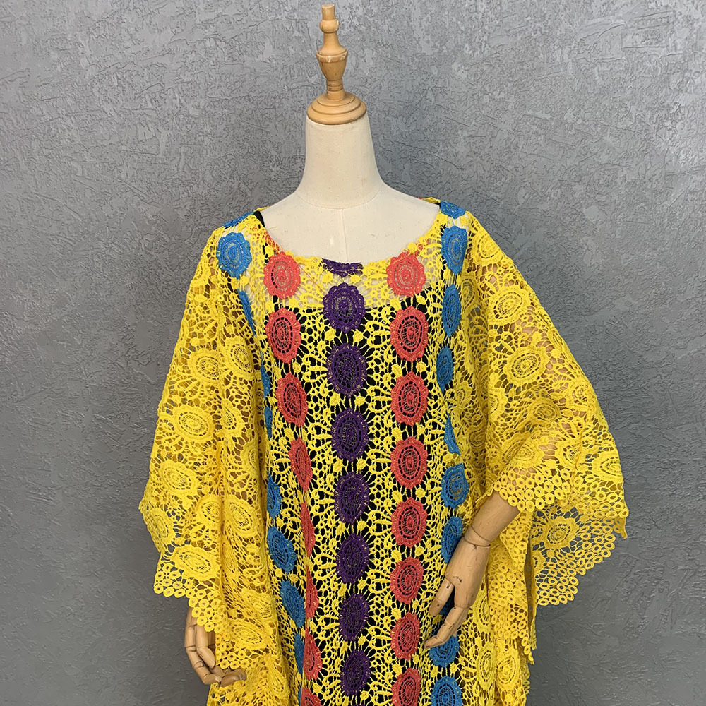 Product information: Fabric name: lace Color: yellow, wine red, wine red, wine red, yellow, yellow Main composite material: Polyester Size: free size Long Skirt: long skirt Long Sleeve: short sleeve Skirt classification: Dress