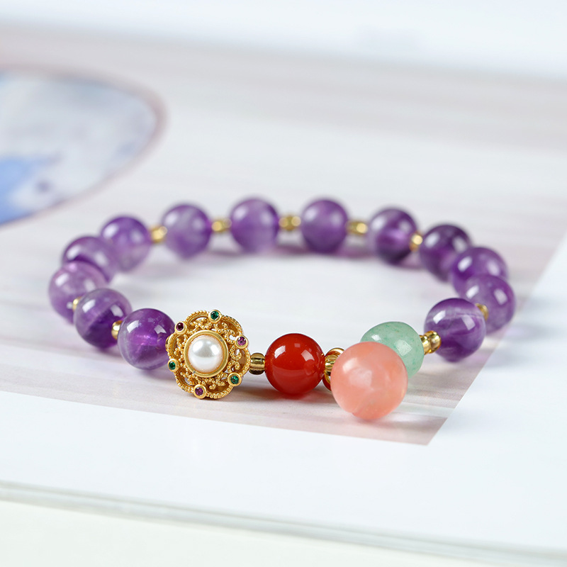 Product information:Type: BraceletStyle: UnisexColor: Amethyst -- Peach style [about 8mm], amethyst -- Persimmon style [about 8mm]]Material: Crystal