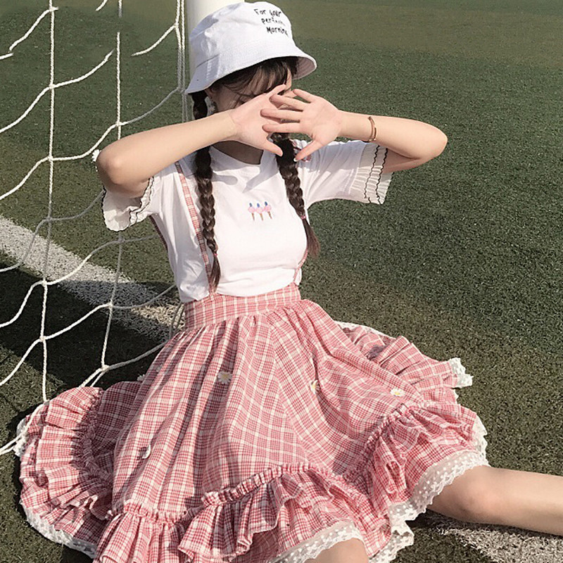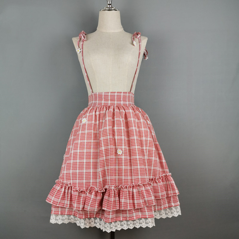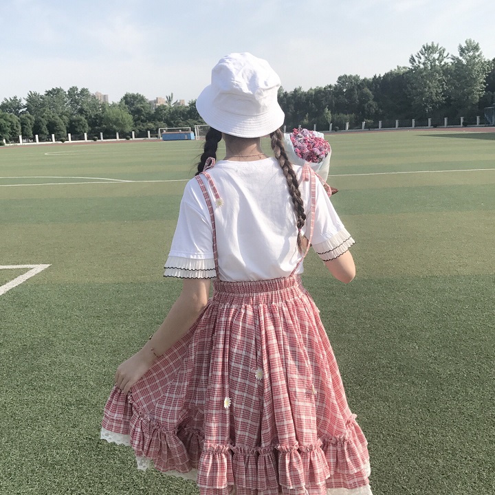 Color: white shirt [single piece], red check skirt [single piece]
