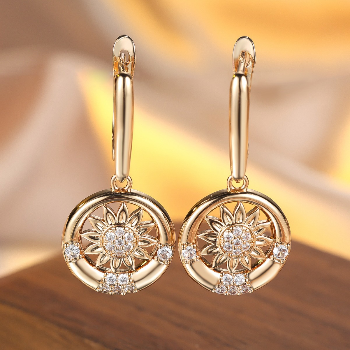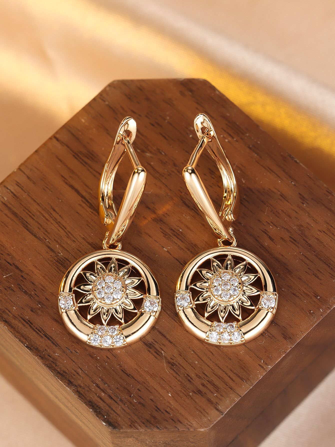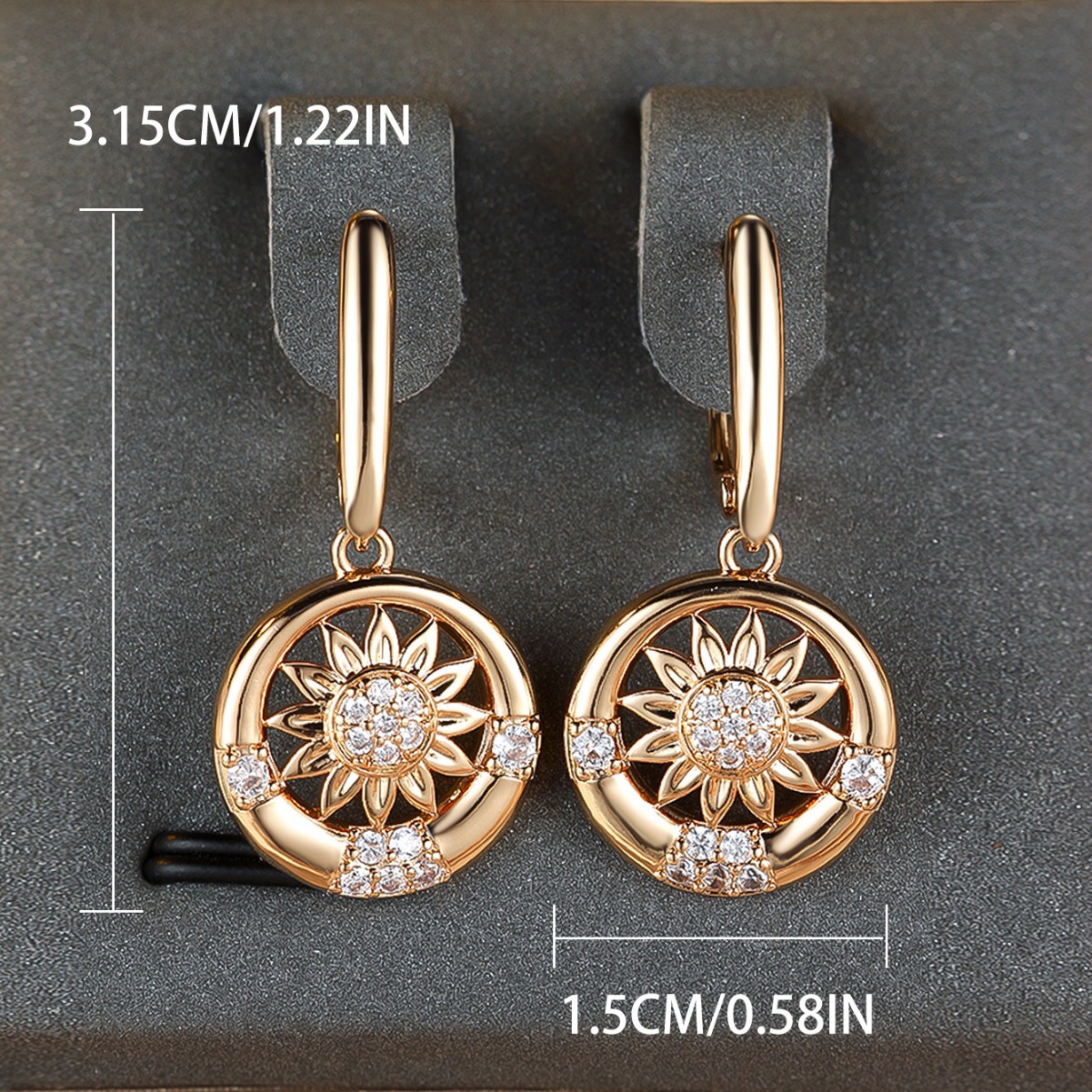 Round White Diamond Sunflower Earrings For Women