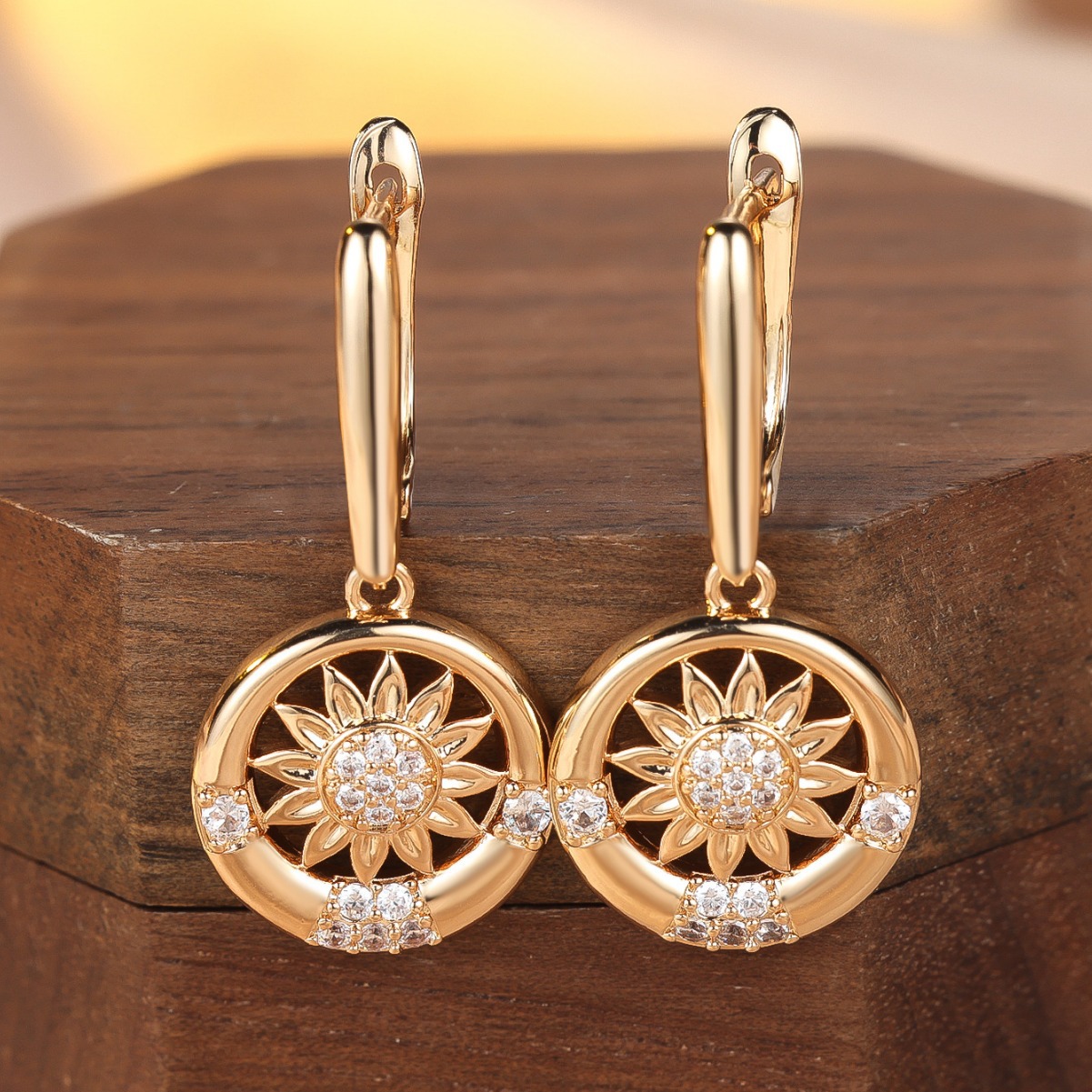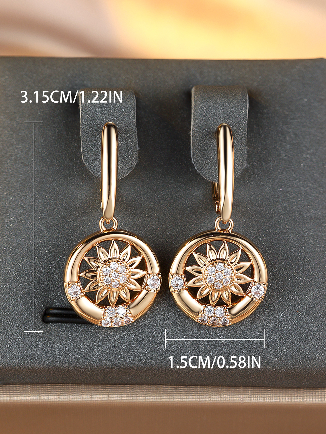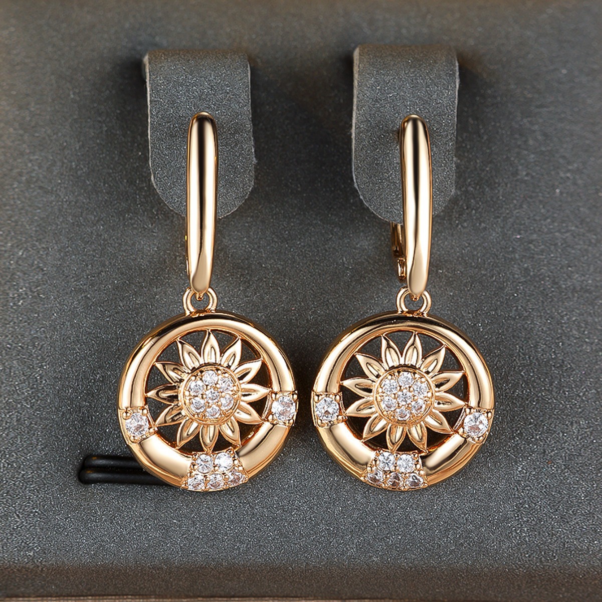 Round White Diamond Sunflower Earrings For Women
