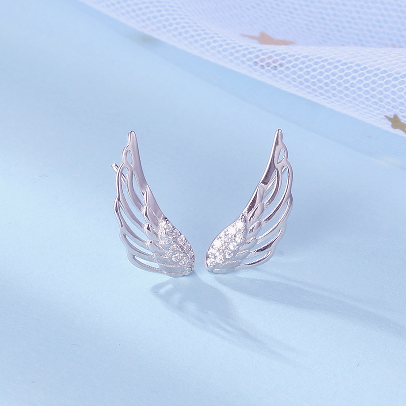 Material: SilverTreatment process: diamond inlayType: ear nailStyle: WomenCrystal type: ZirconShape: WingsInlay material: Cubic ZirconiaPurity: 925 Silver