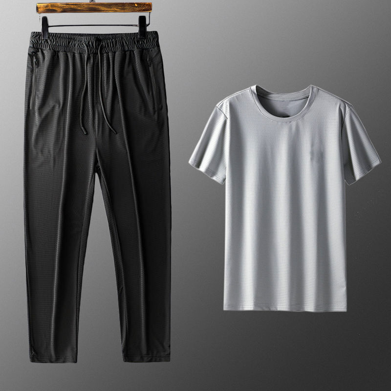 Colour:style1:S002 grey straight + grey t-shirt, style2:S002 black straight + grey t-shirt, style3:S002 black straight + black t-shirt, style4:S002 grey straight + black t-shirt, style5:S001 black legging + grey t-shirt, style6:S001 black legging (single trouser), style7:S002 grey straight (single trouser), style8:S002 black straight (single trouser)