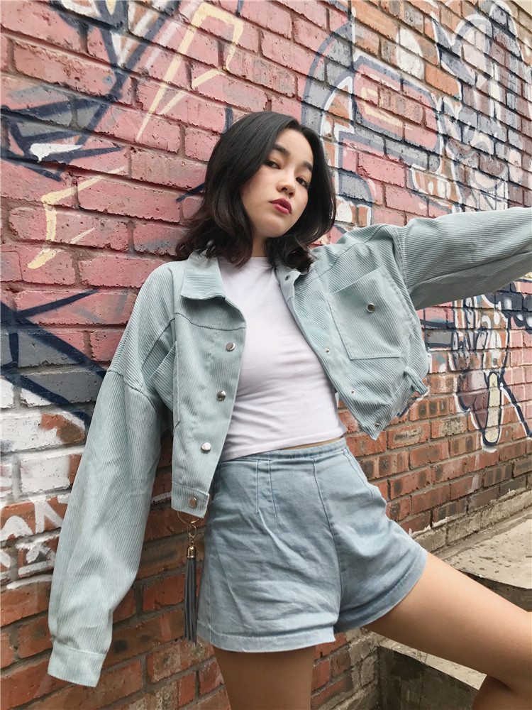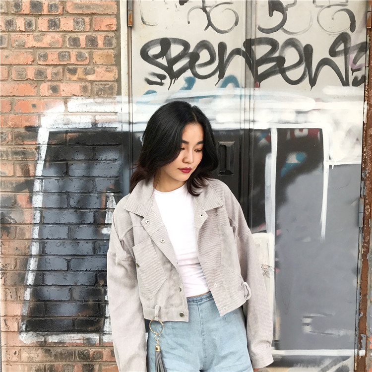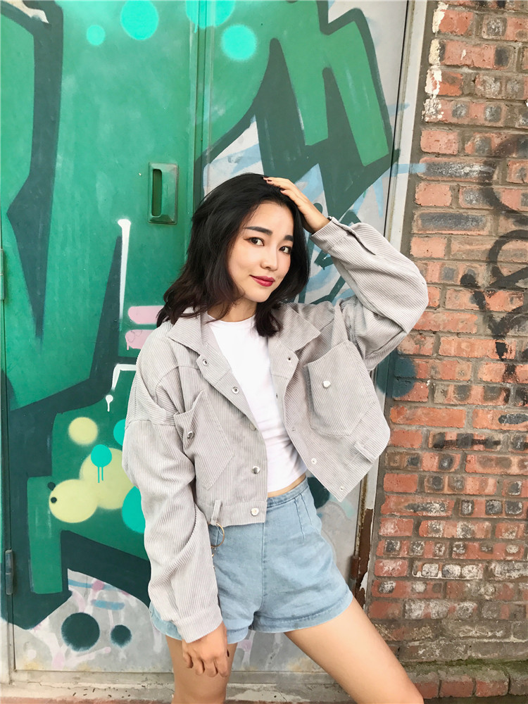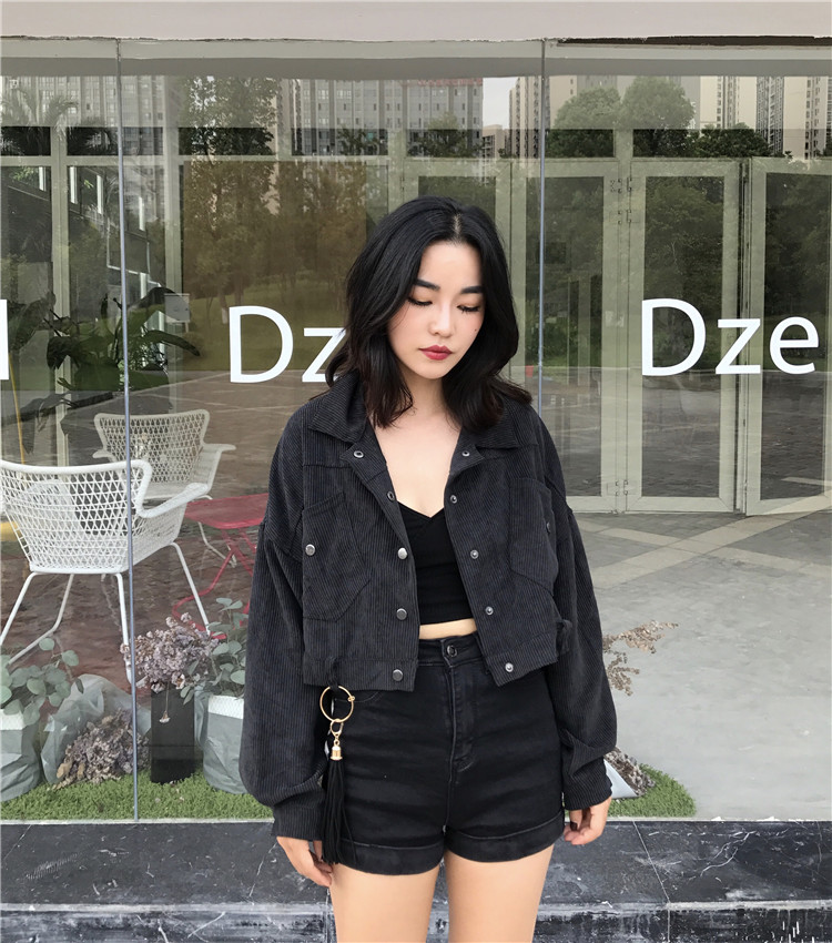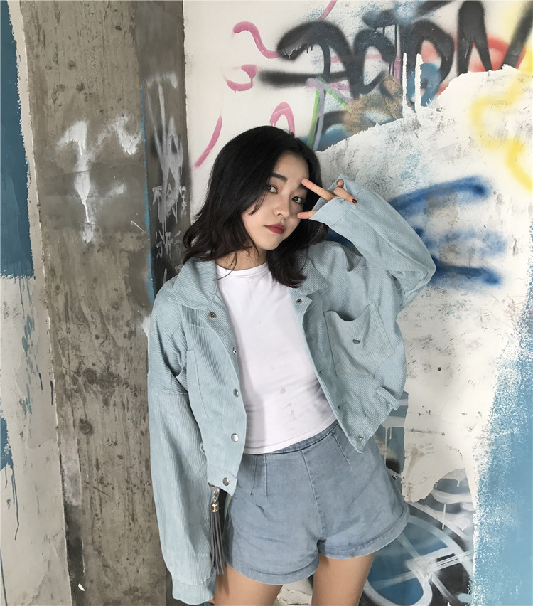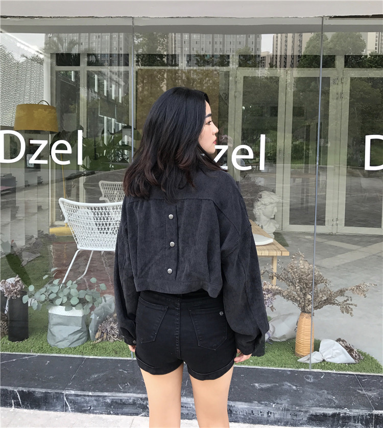 Fabric: Corduroysize: one sizeLength 43 Bust 118 Sleeve Length 44 Shoulder Width 68