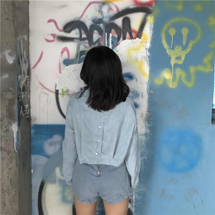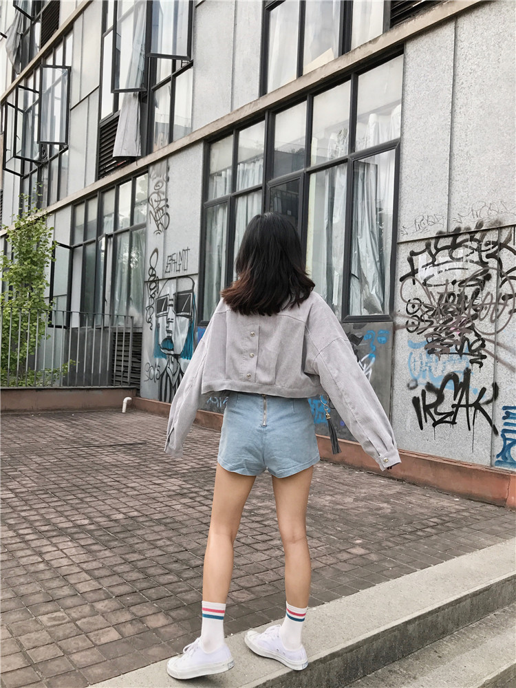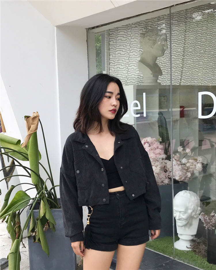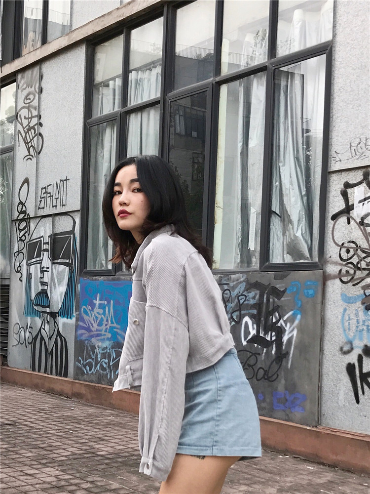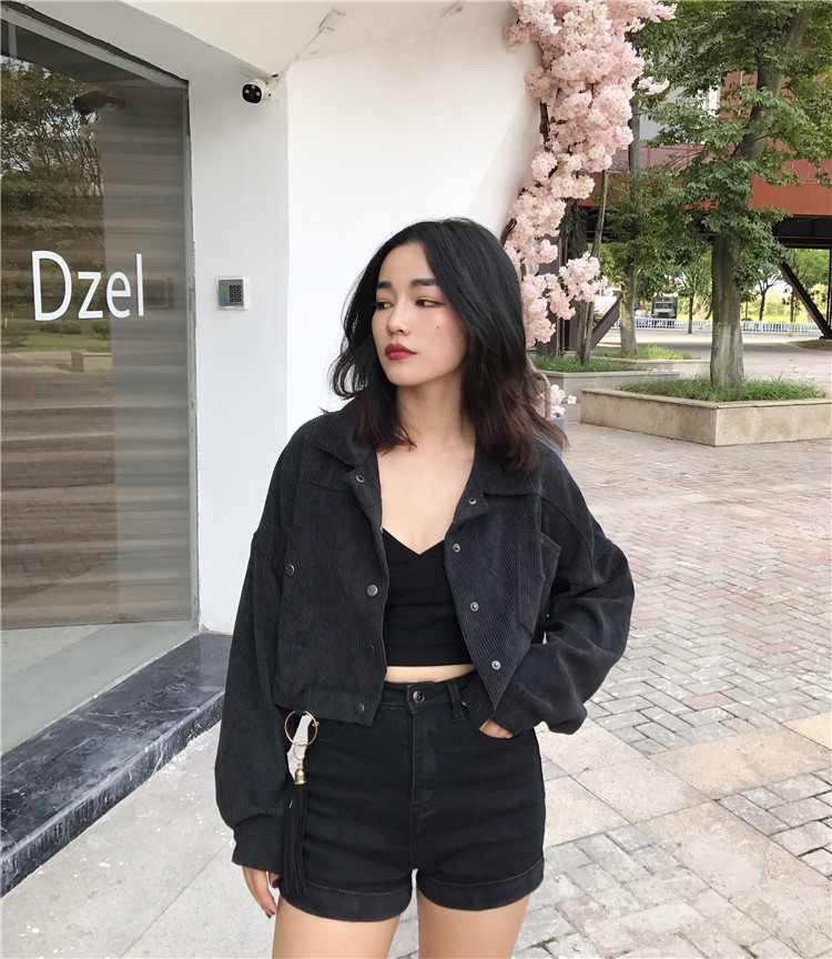 Fabric: Corduroysize: one sizeLength 43 Bust 118 Sleeve Length 44 Shoulder Width 68