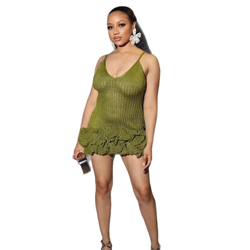 Summer Women's Clothing New Sexy Cutout Knitted Lace Sling Skirt