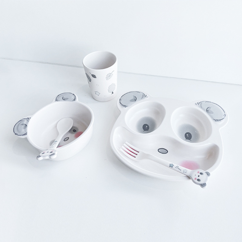Name: 5-piece set of bamboo fiber tableware for children