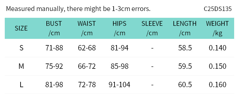 Note:1. Asian sizes are 1 to 2 sizes smaller than European and American people. Choose the larger size if your size between two sizes. Please allow 2-3cm differences due to manual measurement. 2. Please check the size chart carefully before you buy the item, if you don't know how to choose size, please contact our customer service. 3.As you know, the different computers display colors differently, the color of the actual item may vary slightly from the following images.