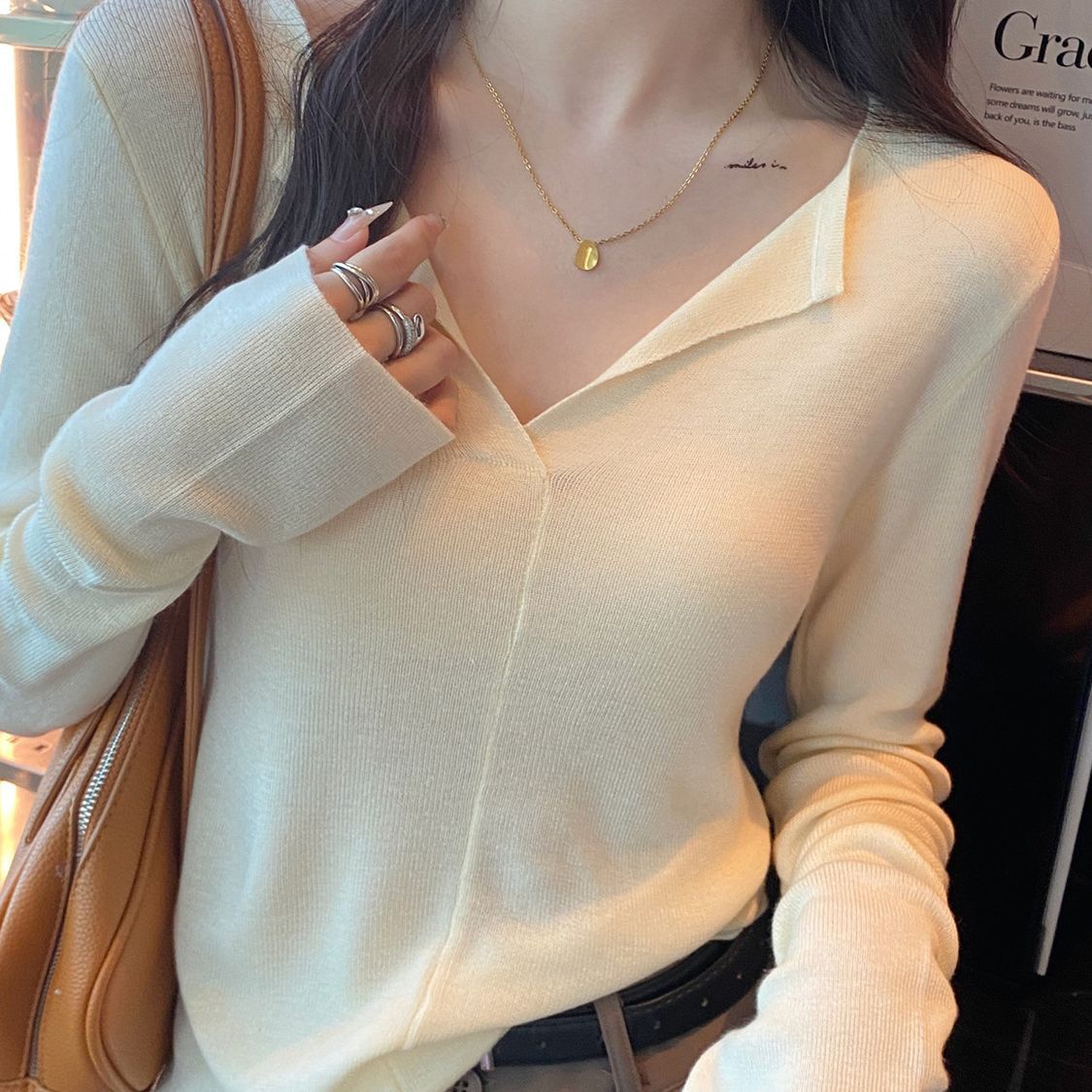 Product information:Pattern: Solid colorColor: White, black, pink, apricotStyle type: Temperament commuteCombination form: Single pieceStyle: PulloverMain fabric composition: Polyester Style: Elegant style