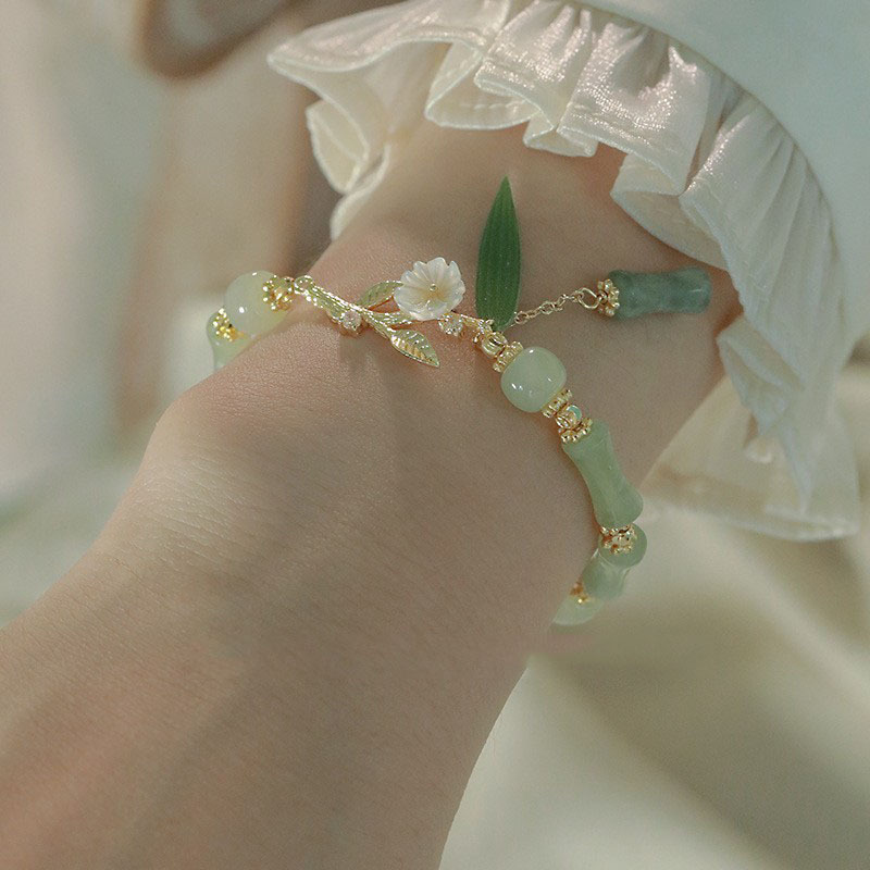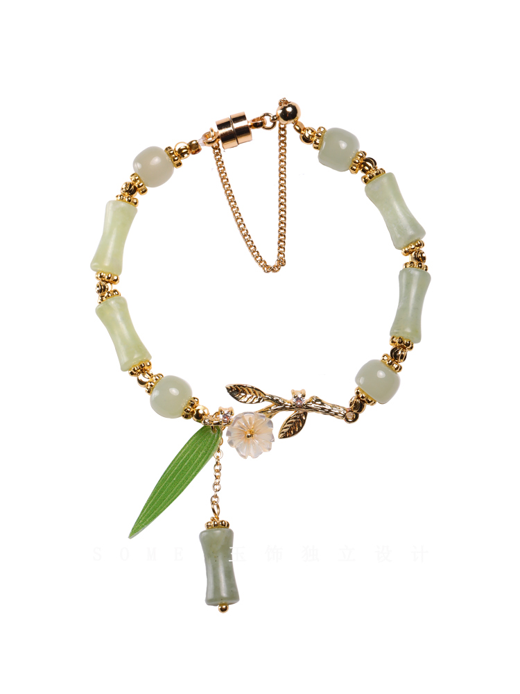 Product information:Style: fashion OL Bead size: Southern Jade 5 * 12mm, Hetian jade 6-7mm Product Materials: bamboo South Jade, white lip shell Accessory material: domestic 14K gilded, leaf Heat Shrinkable sheet, average size adjustable