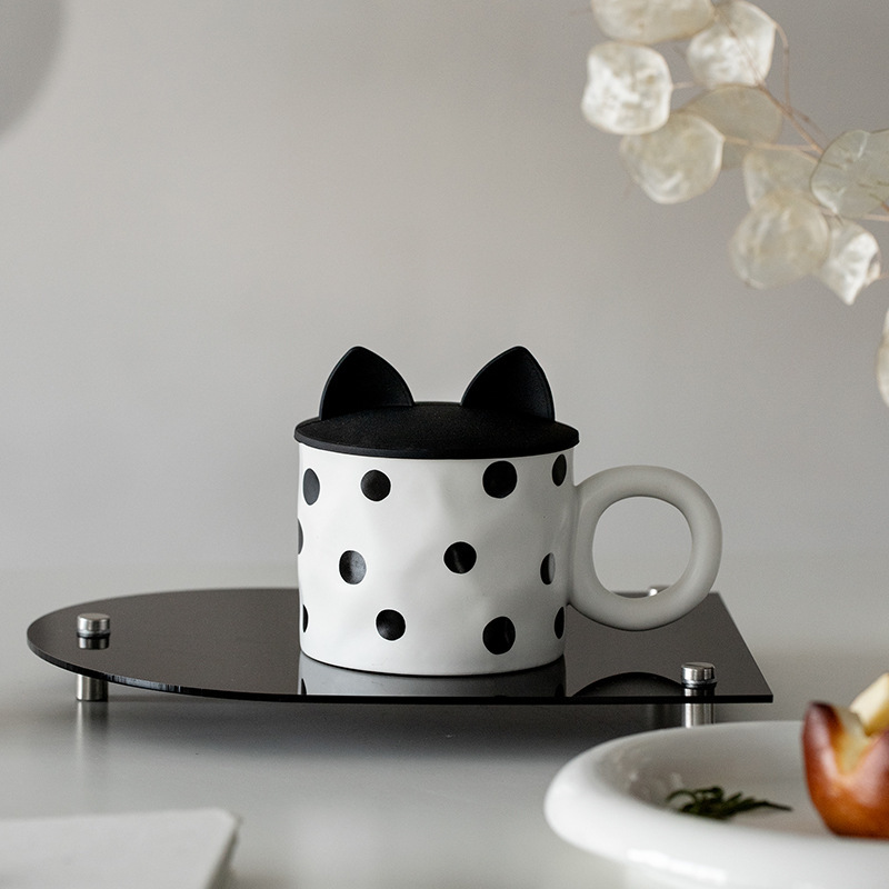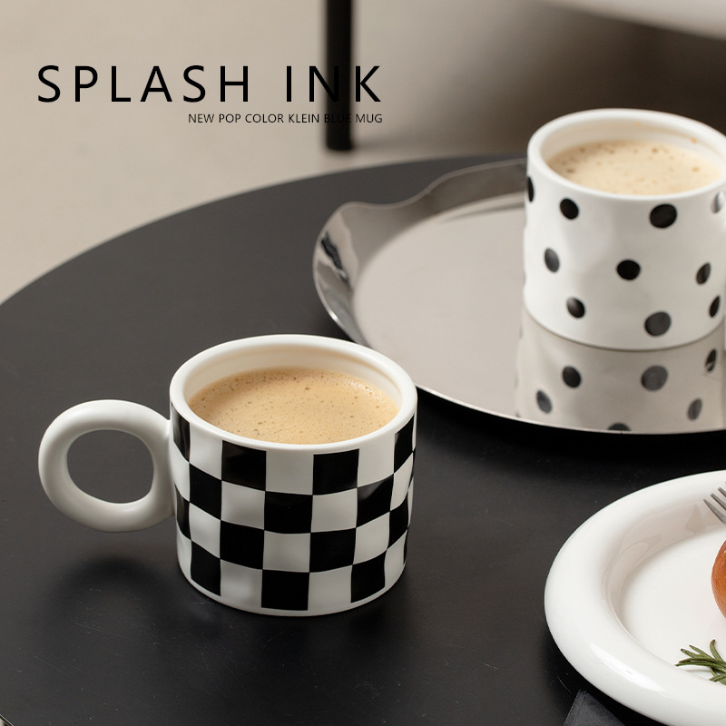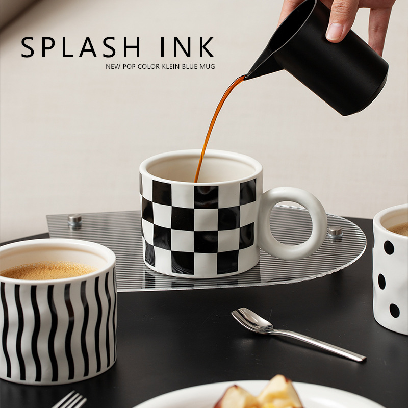 Product information:Color: geometric corrugated mug, black and white polka dot mug, checkerboard mug, geometric corrugated mug cover, black and white polka dot mug cover, checkerboard mug coverMaterial: CeramicStyle: Retro