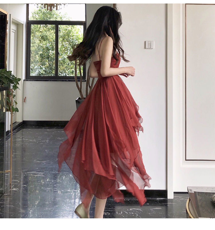 Product information: Color: wine red Size: S ,M ,L,XL Style type: street fashion Skirt Category: Dress Popular elements: ruffles Style: Irregular Style: Street style Craft: solid color, zipper, ruffled