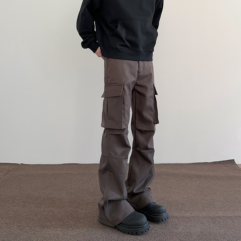 Pleated Cargo Pants With Large Pockets Straight Leg Pants For Men And Women