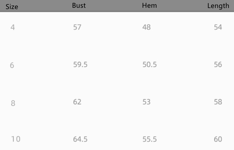 Size: 4, 6, 8, 10 unit: cm