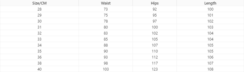Size: 28, 29, 30, 31, 32, 33, 34, 36, 38, 40