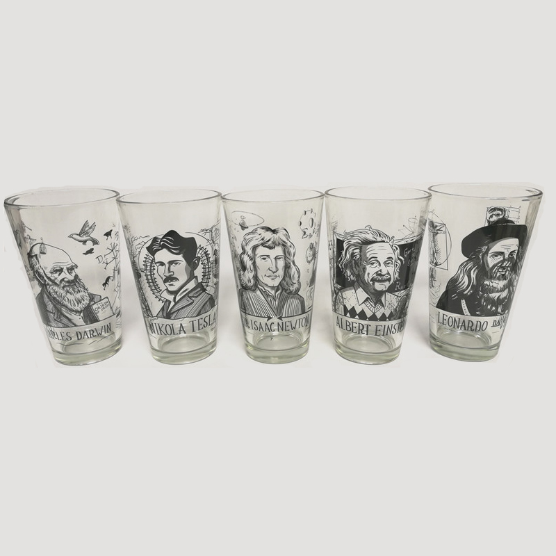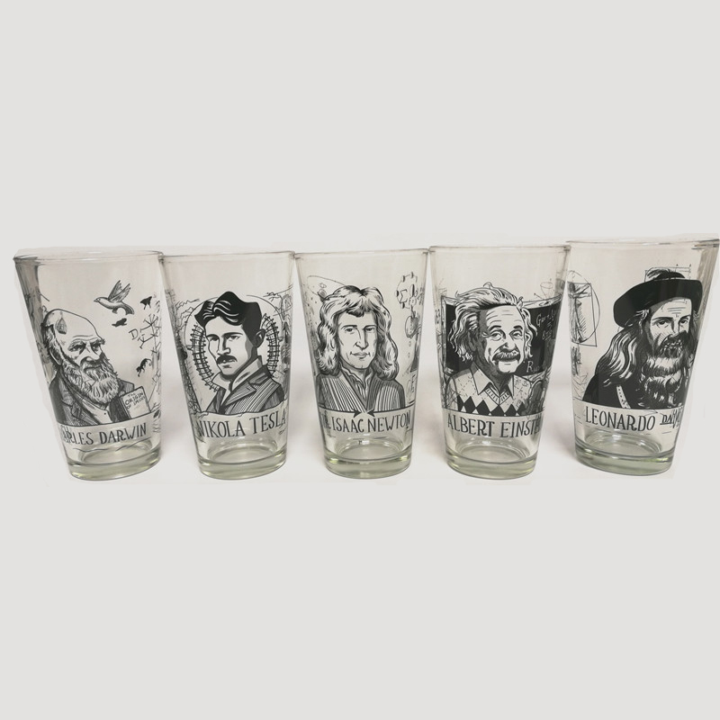 Capacity: 475MLShape: roundStyle A: DarwinStyle B: TeslaStyle C: Da VinciStyle D: NewtonStyle E: EinsteinNumber: 1 glassDesign and color: printing