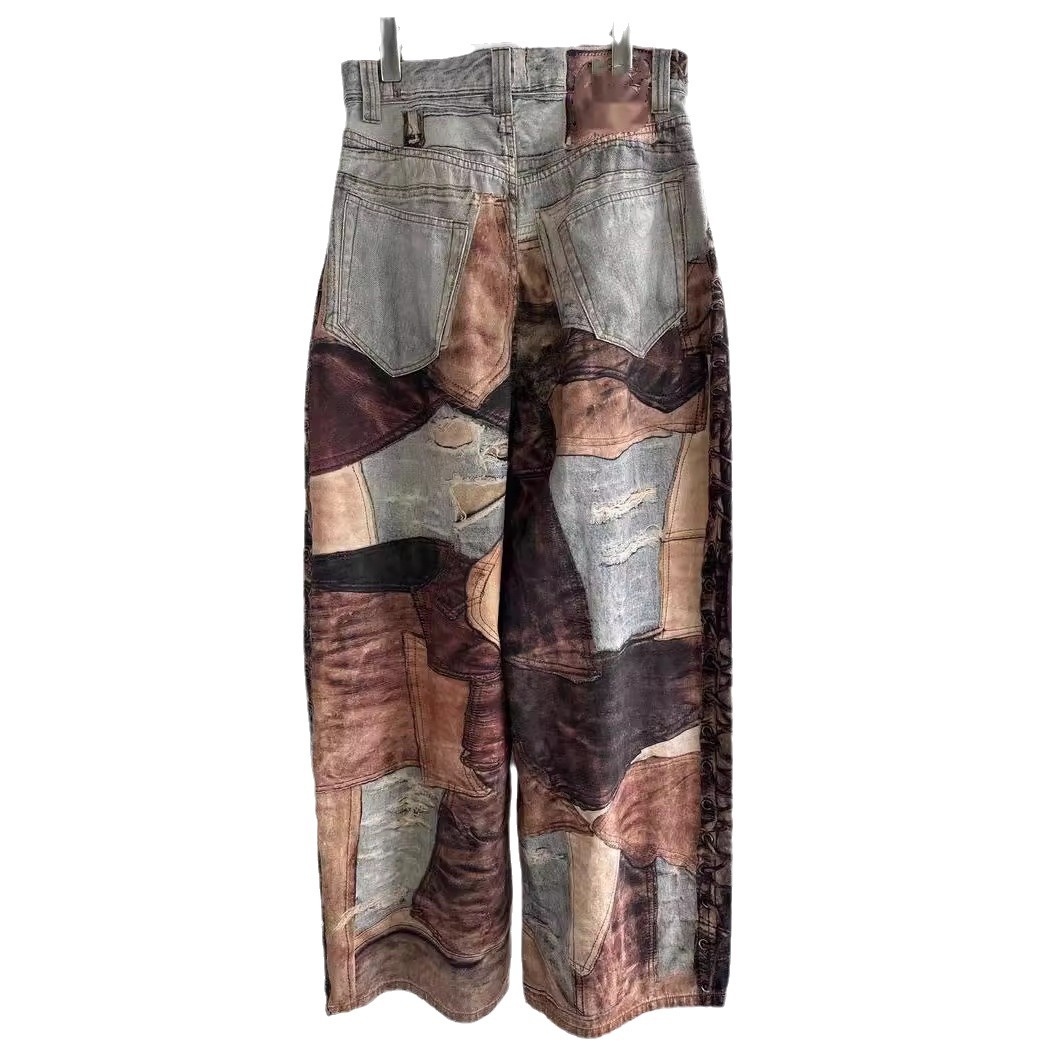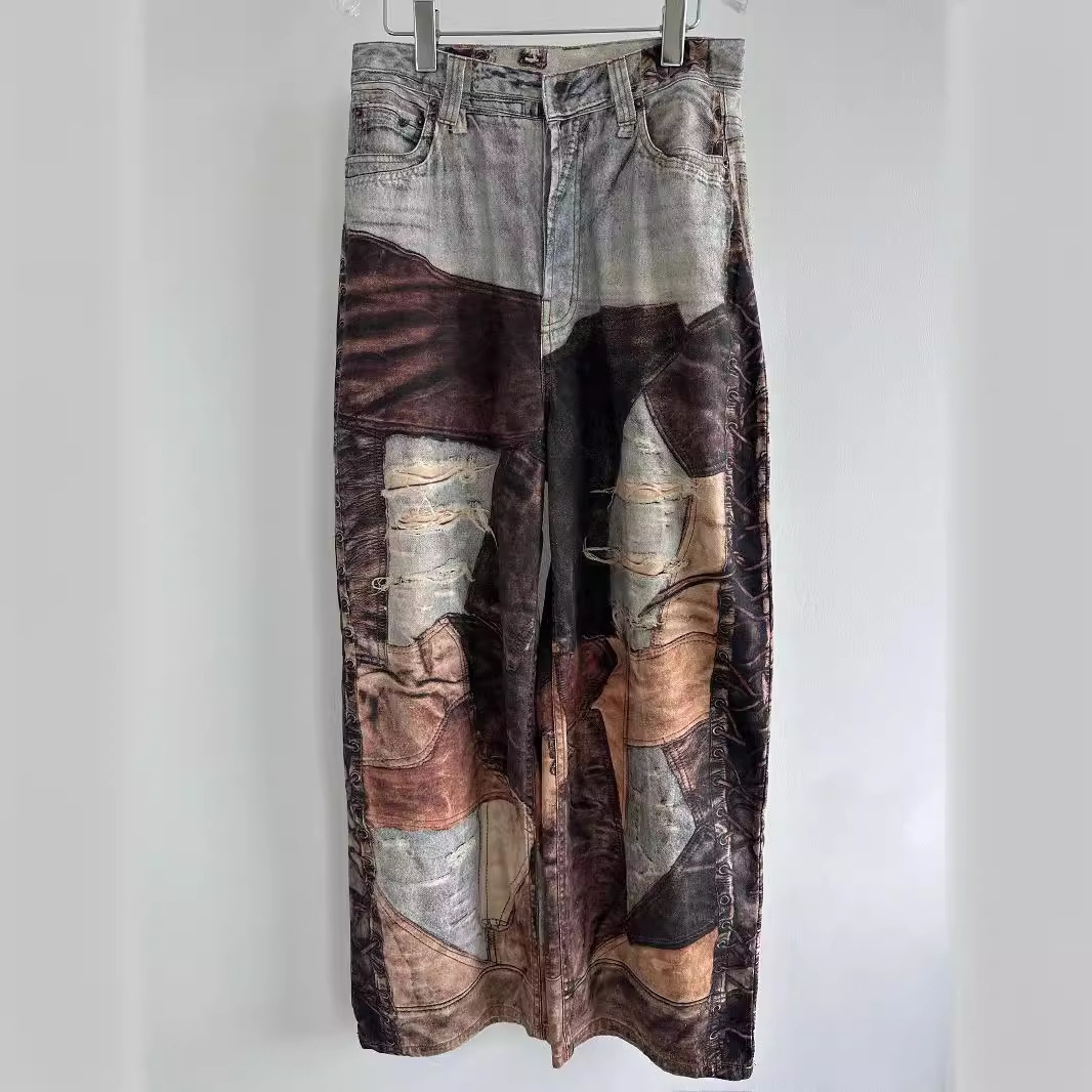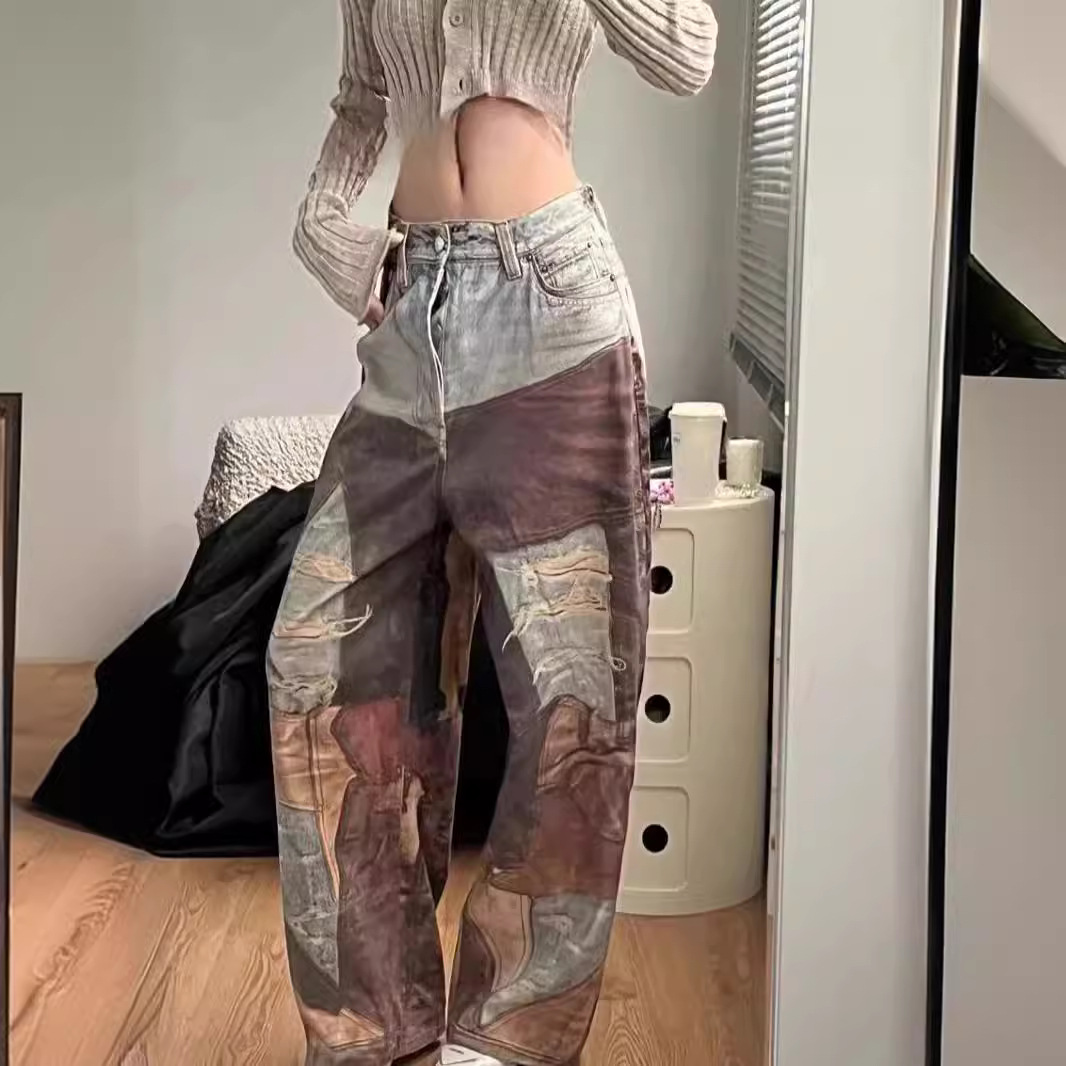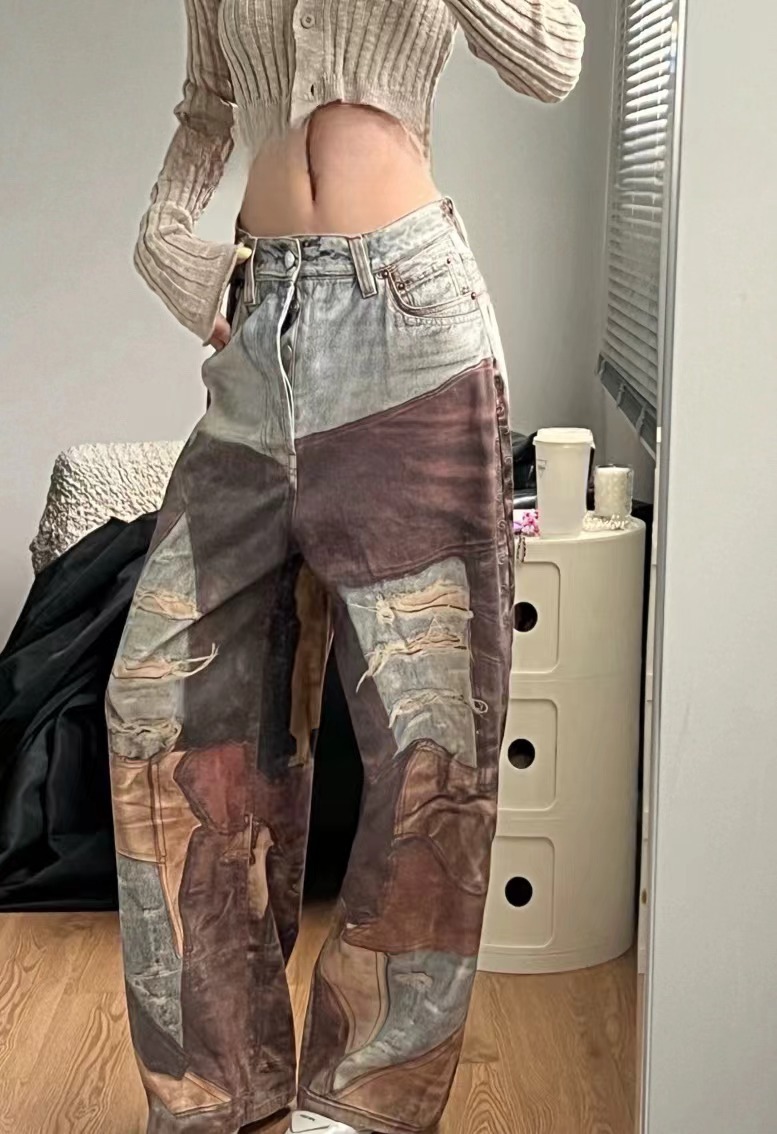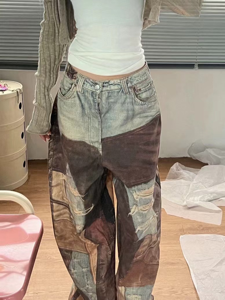 Product information: Color: Picture color Main fabric composition: Polyester Size: S,M,L Style type: temperament commute Pants type: straight-leg pants Popular elements: distressed Style: straight-leg pants