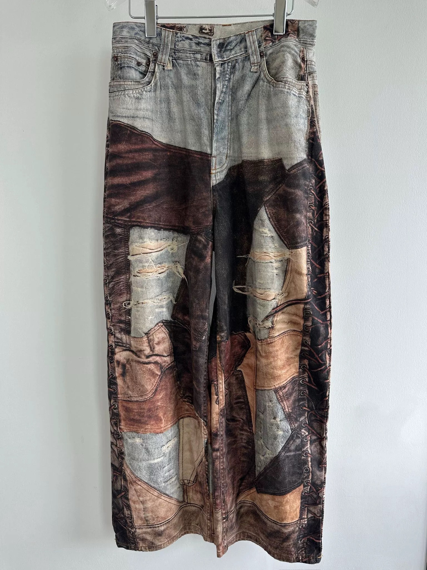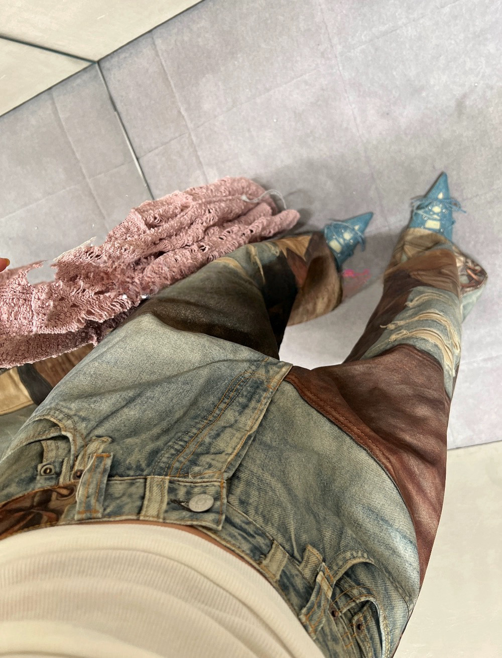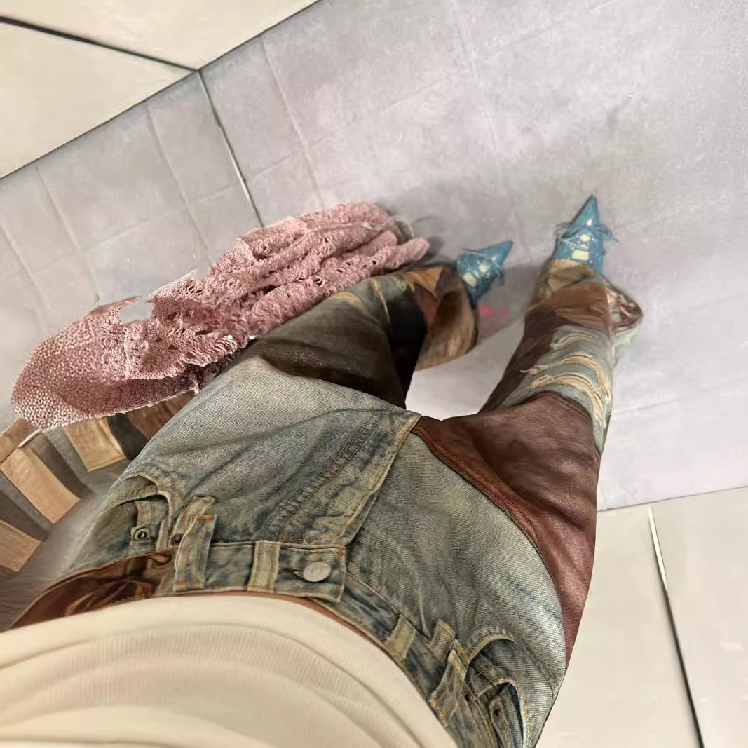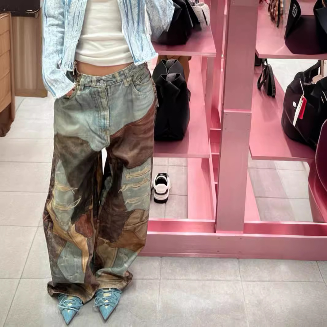 Product information: Color: Picture color Main fabric composition: Polyester Size: S,M,L Style type: temperament commute Pants type: straight-leg pants Popular elements: distressed Style: straight-leg pants
