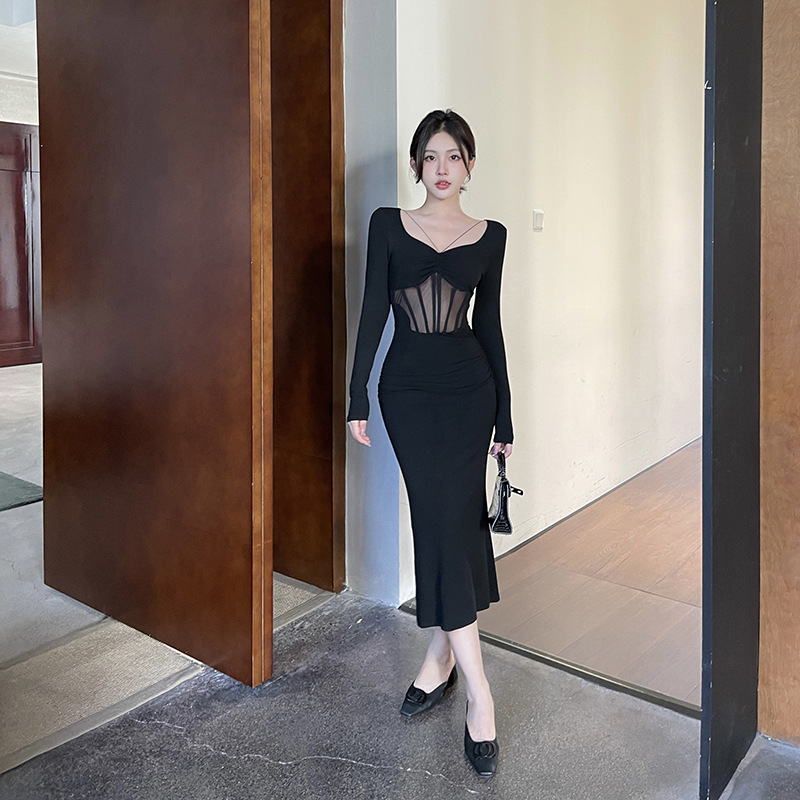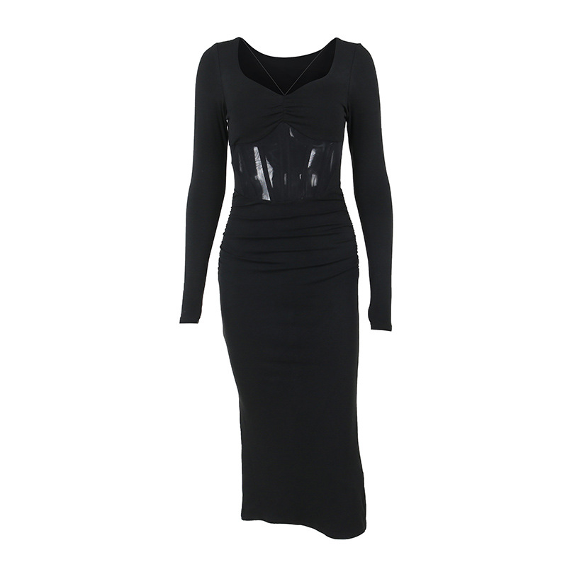 Product information: Color: Black Waist Type: Mid waist Size: S,M,L,XL Style: pullover Sleeve type: regular sleeve Main fabric composition: Polyester (polyester fiber) Sleeve length: long sleeve Skirt Category: Dress