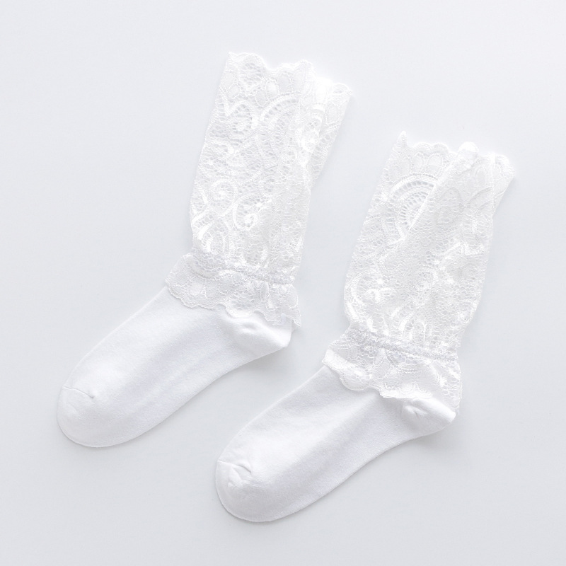 Product information:Fabric name: combed cottonFunction: breathable and sweat-absorbingStyle: sexyPattern: Peacock FeatherProcess: cotton+laceColor: black, whiteSize information:Size: One SizePacking list:Socks X10Pair