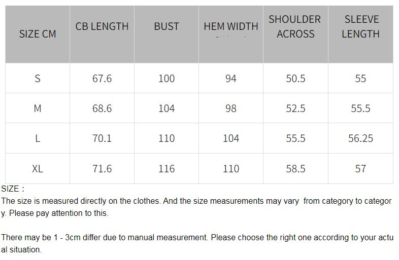 1. Asian sizes are 1 to 2 sizes smaller than European and American people. Choose the larger size if your size between two sizes. Please allow 2-3cm differences due to manual measurement. 2. Please check the size chart carefully before you buy the item, if you don't know how to choose size, please contact our customer service. 3.As you know, the different computers display colors differently, the color of the actual item may vary slightly from the following images.