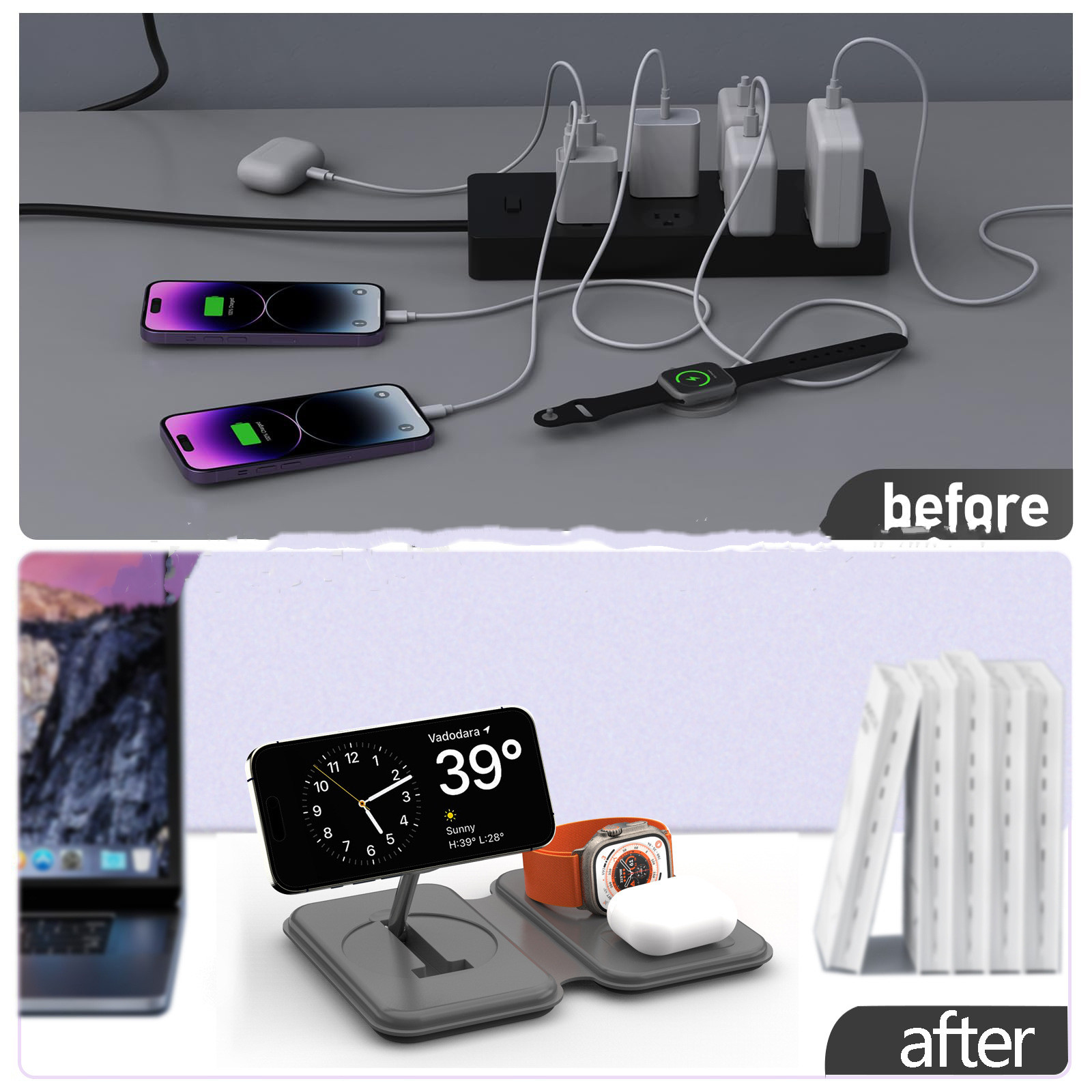 Type: Folding magnetic three in one wireless charger
