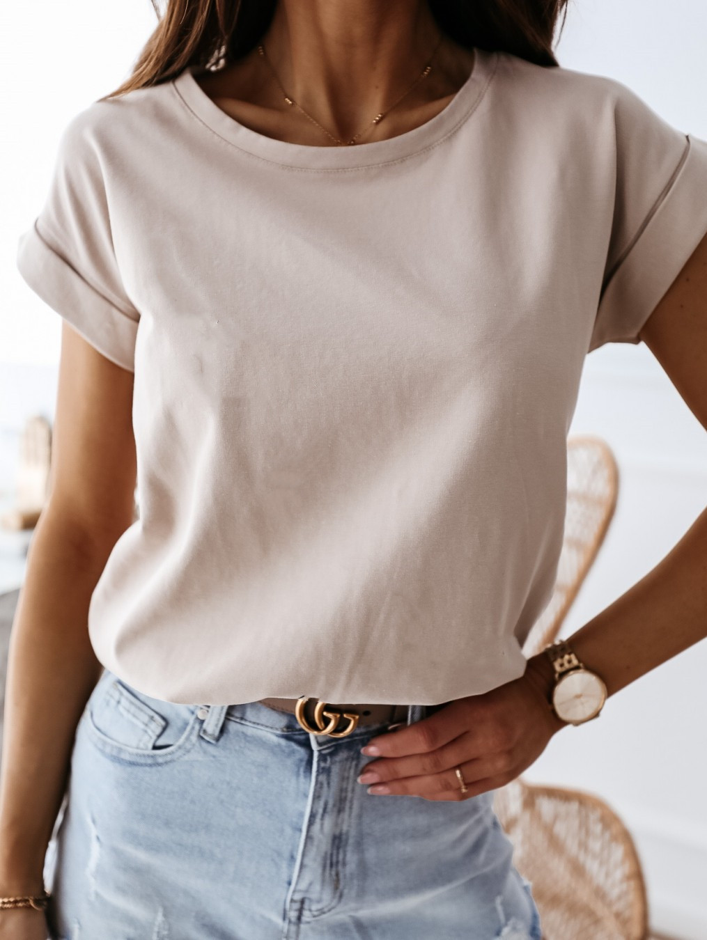 Solid color short sleeve round neck ladies T-shirt