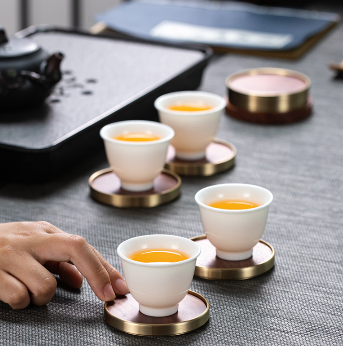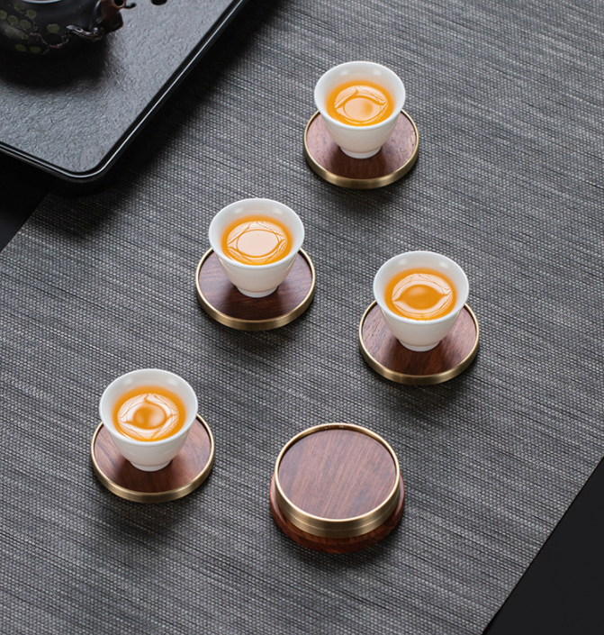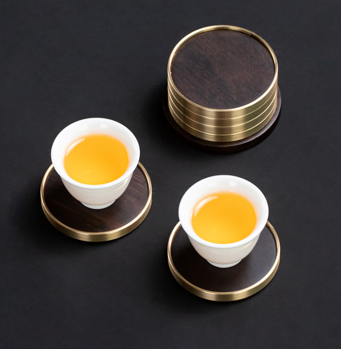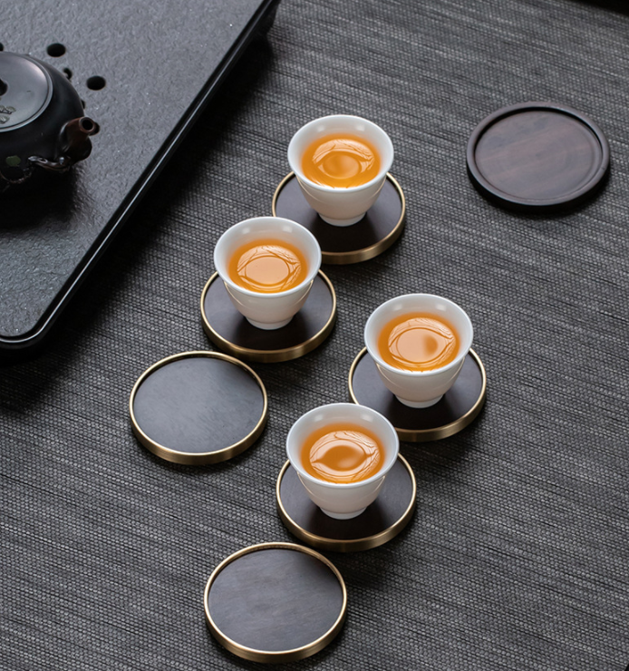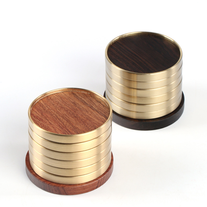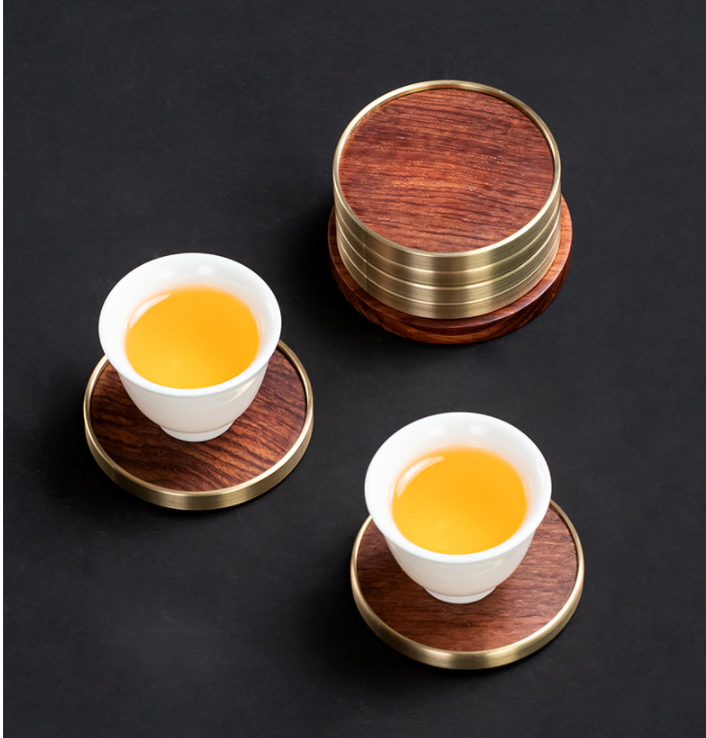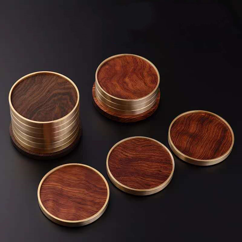 Craft: semi-manualMaterial: Ebony, Rosewood, CopperSpecifications: 6 coasters and a baseSize: as shownRemarks: Hand-made, there is a small error in the size, please understand