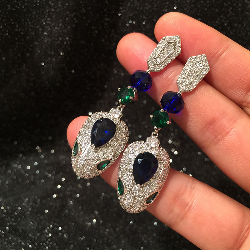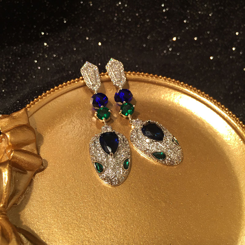 Emerald Eye Snake Earrings Temperament Dinner Earrings