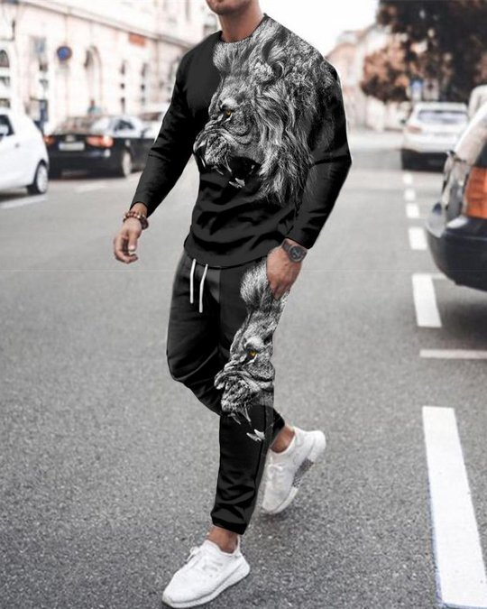 3d Digital Printing Crew Neck Sweater Sports Trousers Suit