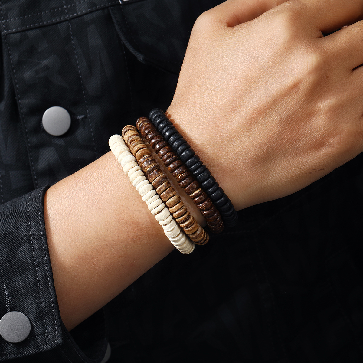 Product information:Type: Bracelet Color: mixed color Material: coconut shell Style: Unisex Size: circumference 19m, diameter 6cm Style: Retro
